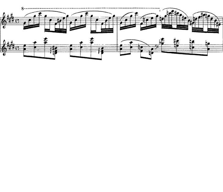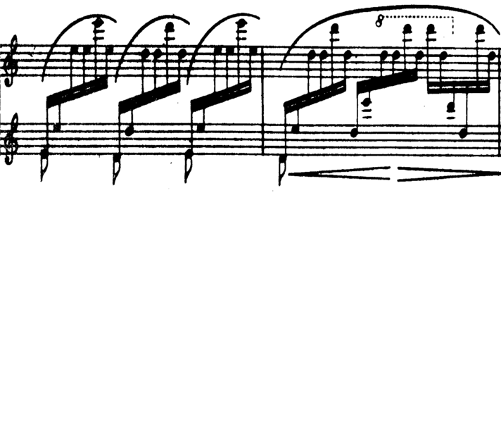 Score example 6. Liszt, F. (1916). Les Jeux d´eaux á la Villa d´Este. Franz Liszt, Leipzig. Musikalische werke. mm. 108-111