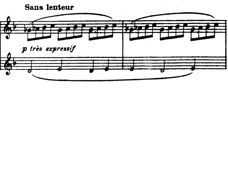 The inspiration in this kind of texture is well discernible. Thus, it may be played as Debussy marks “Sans lenteur”.