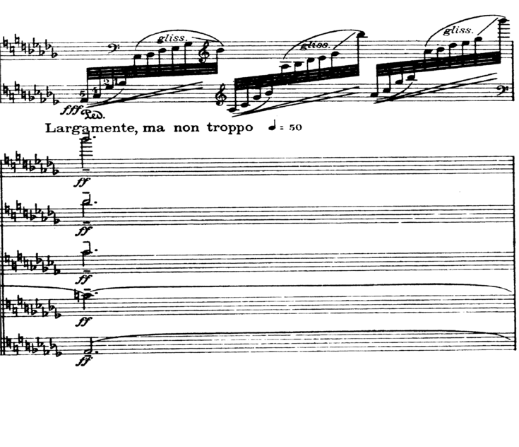 The piano part is, again, another entity of the orchestra. Therefore, instead of spar against the rest of the instruments, should join them in pro of a complete sonority. Avoiding arrangements based in finger playing instead of a real glissando is highly recommended.