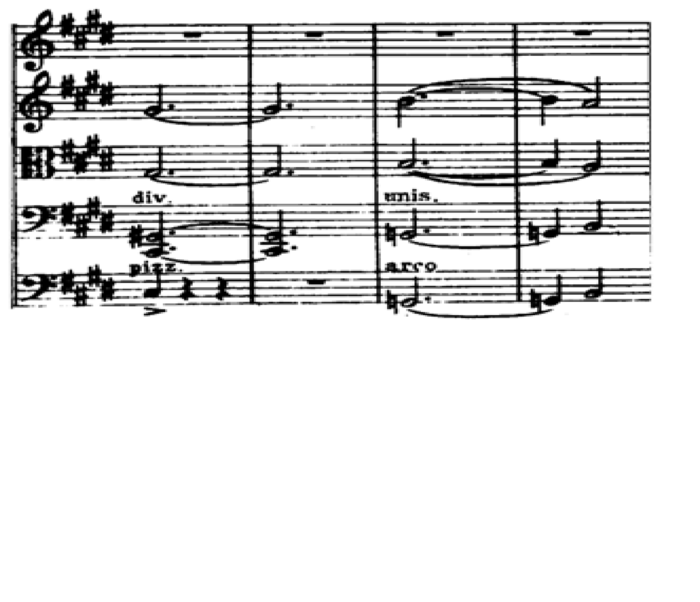 Rythmic motives can be found appearing in both pieces. In the first movement of this Fantasie, Debussy writes the passage of score example 17.