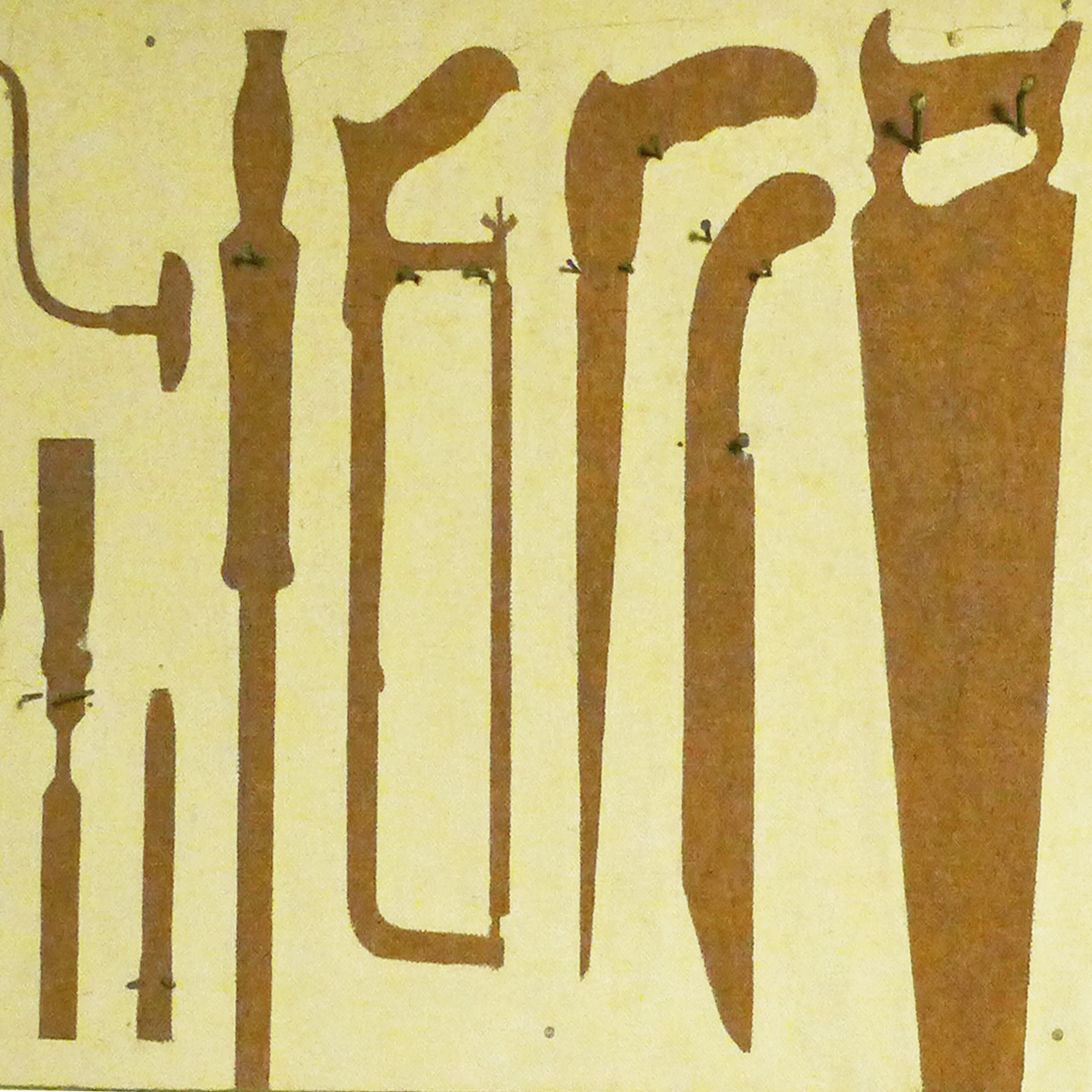 Tuva: Gaute fikk sitt eget arbeidsrom med høvelbenk i kjelleren. Her hadde han sitt eget verktøy, og skuffer med skruer, spiker, gamle dørhåndtak og beslag. Hyllen var laget av skuffer som var til overs fra mosaikkhyllen i 1. etasje.