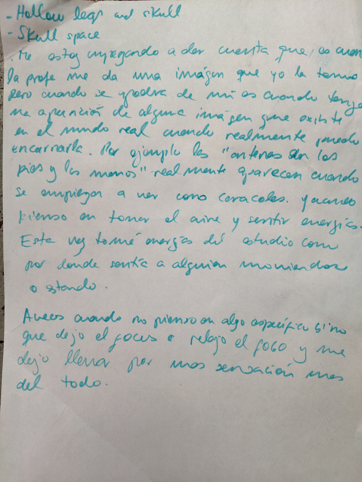 In our attempt to translate this text into Spanish, Keith and I started by discussing the first two words in this excerpt, “my body,” and considered the distinction between “mi cuerpo” and “el cuerpo,” the options available in Spanish. Together, we focused on what these two different words evoked in us and the felt sense we experienced as readers within the framework of this opening paragraph.