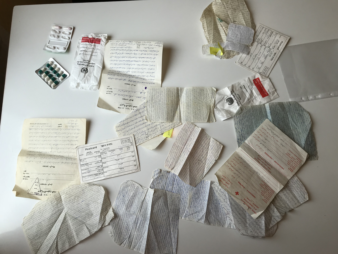 Breven skrevs av en livstidsdömd palestinsk fånge som smugglade dem inrullade i kapslar som svaldes av b.la. besökare. Breven är väldigt känsloladdade och beskriver den längtan, det lidande fången kände och kärleken till makan. De är skrivna med mycket liten text på mycket tunt papper, nästan lika tunna som toapapper. Sättet han skriver, valet av ord men även själva utformningen på bokstäverna förmedlar bär med sig ett budskap. Omvägarna som han behövde ta för att nå ut med sina brev gjorde att varje utrymme i brevet var värdefullt därav också det ständiga användandet av symboler och förkortningar. Det fanns två typer av brev; smugglade brev men också brev skickade öppet genom Internationella Rödakorskommittén. De skrevs under en period från 1980-1995 och kommer att finnas som original och översatta till svenska på utställningen.