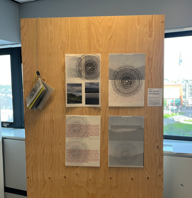 De uitspraak van George Lakoff : “taal vormt een lens waardoor we de wereld zien” neem ik als uitgangspunt. Ik visualiseerde dit in een oog, opgebouwd uit woorden. Het roept de vraag op: door welke lens kijken we nu naar klimaat en natuur? En is dat wel de juiste?