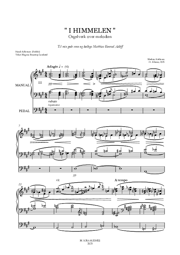 - Eksamenskoonsert for Sigrid Gunnarsjaa Kråkenes, 2. juni, 2025 på Norges musikkhøgskole. Der spilte jeg orgel på to stykker av Hugo Wolf, som jeg transkriberte.