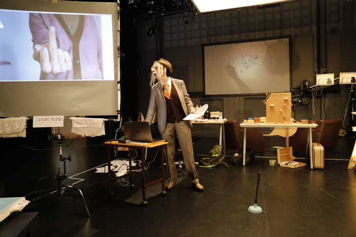 The trickster brandishes the scalpel. This research project initially aims to excavate whiteness and privilege, and the likely shame associated with these, through comic improvisation and expanded notions of performance, developing the clown genre in the current geo-political context. I’m interested in the moment when the poetic gesture becomes political, questioning the tangible ramifications in this so-called ‘real’ world.