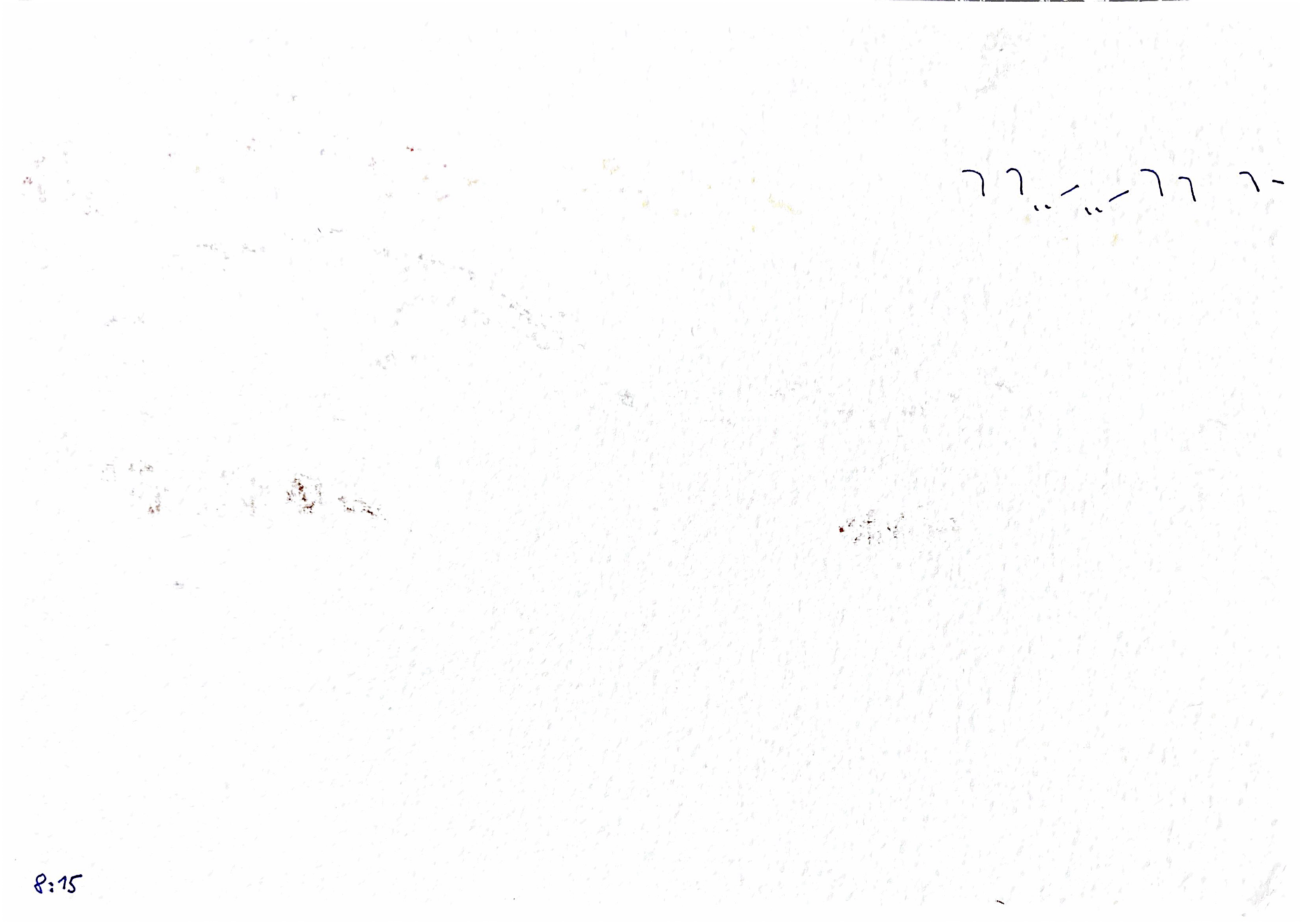 Postupně se mi podařilo ponořit se opět do naslouchání jemným stimulům. V dáli se ozval pes a ostatní mu napříč údolím začali odpovídat.16 Ptáci, jako by to chtěli napodobit, začali soutěžit o to, kdo zaplní akustický prostor. V tu chvíli, bylo to kolem čtvrt na devět, jsem zažil moment, který bych nazval epifanií ticha. Uvědomil jsem si, že v mém vědomí je téměř prázdno a bylo to krásné. Příslušná stránka ve skicáku (s. 7, viz níže) je téměř celá bílá, jen na jejím pravém horním okraji je zakreslen hlas konipasa s jeho typickým „tyú! tyú! taktak tá?“.