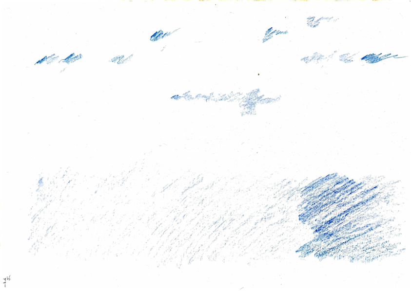 O chvíli později se objevily v krajině nové zvuky: industriální rány a dunění jedoucího vlaku. Tyto zvuky se objevily několikrát, ale pokaždé s jinou intenzitou. Ke konci poslechu jsem z dálky zaslechla i štěkání psů, které se párkrát zopakovalo. Nejsem si ale v tuto chvíli jistá, že je ve své kompoziční studii použiji, i když v poznámkách z poslechového dne mám uvedeno, že bych s tímto zvukem pracovat chtěla.
