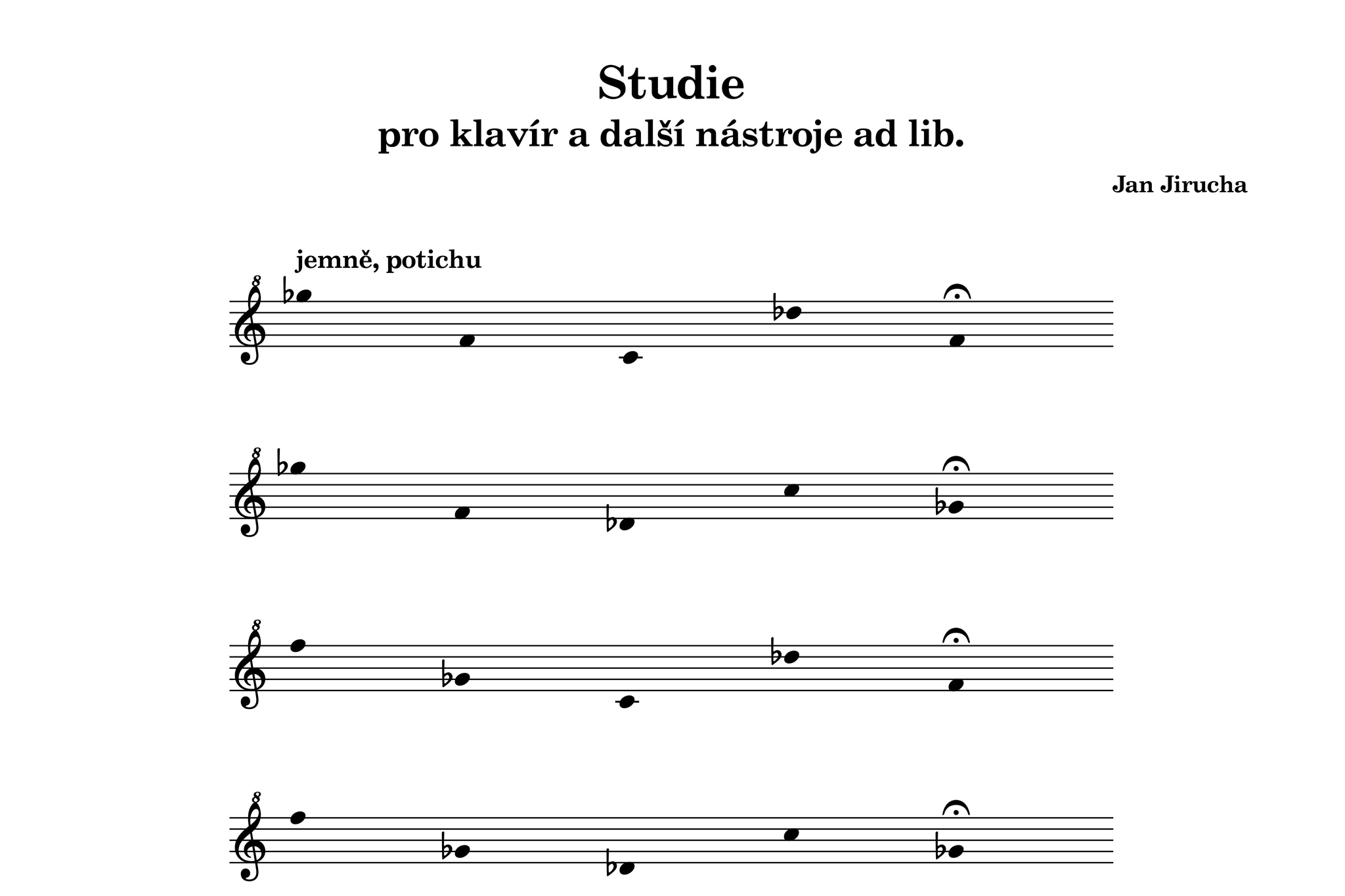 Všechny tyto rozměry (výška, šířka, hloubka, přítomnost), jsem se rozhodl reflektovat ve své kompoziční studii. Základním stavebním prvkem bude tento tónový výběr: des2, f2, ges2, c3, ges3.