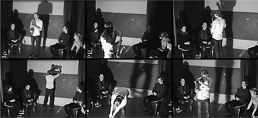 It was around this time that I happened to attend a dance rehearsal, where the choreography was rehearsed without accompanying music. I listened to the rehearsal with my eyes closed, activated the situation musically and suddenly found myself in a soundscape that was full of musical possibilities situated at the living human body and not in it’s mechanical extension—not at the metal body of the saxophone.