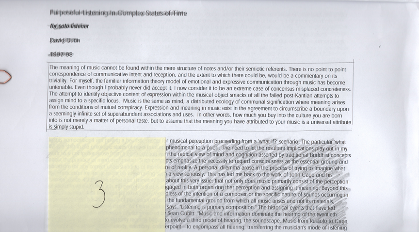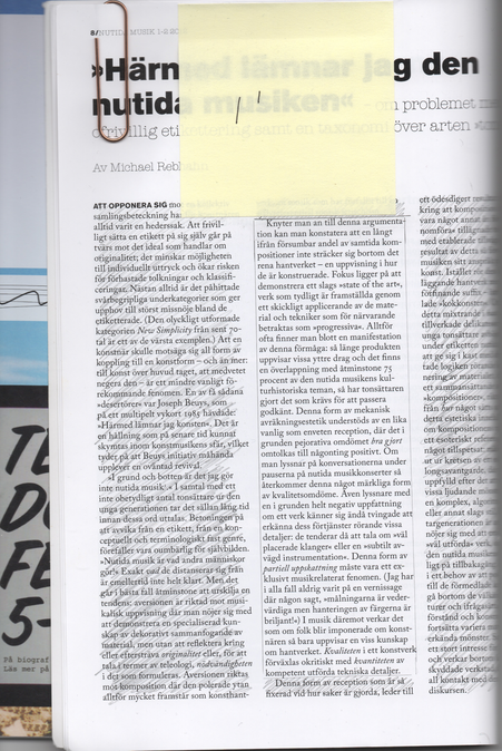 2) The focus (regardless of this perhaps unnecessarily long text) of my artistic research is Ng and Ng revisited and how they correspond to each other when juxtaposed; technically, theoretically, speculatively, aesthetically, in how they sound and operate. In line with the reasoning of artistic research—as I understand it—my most important contribution lies there, tacitly. I will now continue by trying to give an account of my work with the scored music of Ng revisited.