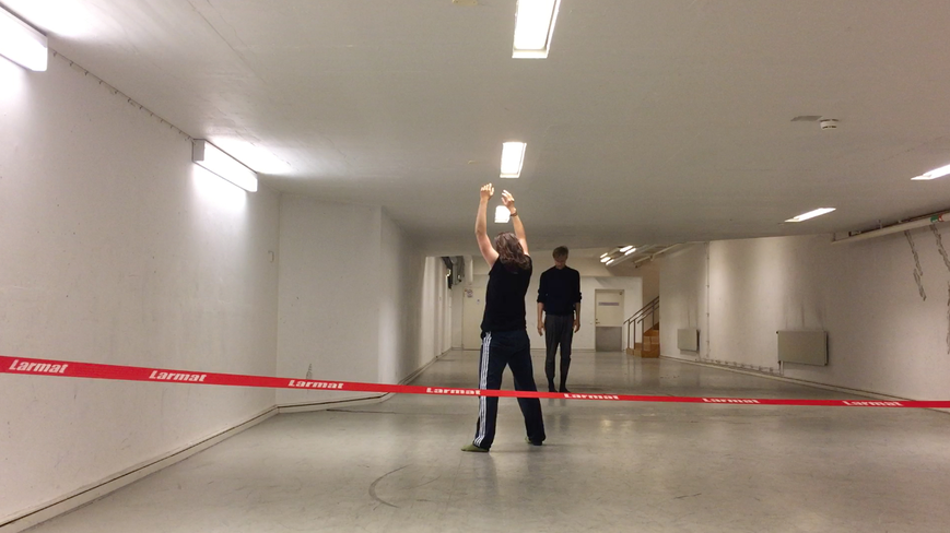 1) To my knowledge there are few accounts of western art music—in fact none comes to mind—that completely abandon the instrument for a choreographic approach. Would such an endeavor simply tip over into the field of dance? I do not necessarily think so, but I believe that such an argument is most convincingly made in practice. Whether this approach is “a substantial donation” to western art music theory and practice, I believe can really only be assessed by whoever experience it. Personally, this approach and the opportunity to conduct research on it have revolutionized my own relationship to music –I can hardly expect this to be the case for anyone else. There are, however, voids that I believe to have identified in western art music reasoning on less of a personal plane. Voids that I try to—if not fill, at least—enter; whether that would pose as a substantial donation however is out of my hands and, again, more up to whoever hears my music and however they react to it. Western art music seems focused on instrumental sounds to the point where instrument, or object, and music almost becomes synonymous. I believe that there are other possibilities to investigate, two of which being a choreographic approach and language as an approach. The conventional music score could perhaps, slightly simplified, be said to be choreography; it might not even necessary to make such a big gesture of it as Simon Steen-Andersen does in his score to Next To Beside Besides: “[w]hat if the composition was thought of as a choreography for musician and instrument—with sound as a consequence” (Andersen, 2003/2006)? –this could be said to always be the case, whether seen as actions prescribed by a score, or as a description of the actions that the musician performs. A musician reading a score moves their body in relation to their instrument in accordance with what they read and the sounds appear. I have, with my research project, attempted to further investigate the consequences of a choreographic approach to music where the safety of an instrument vouching for it being music is gone. Even in a piece like Thierry De Meys Musique de Table where three percussionists play on a table or table-like surfaces, indeed notated with a precision of how the hand should hit this surface to a point that tangent choreography, things are being played. In Blaha Lujza Tér (2016) the floor is being played. Is there really a significant difference? I believe that there is. To a point. The floor is part of the room where the piece is performed and always sounds if one moves around in that room. Unlike Musique de Table, Blaha Lujza Tér (2016) then points to the fact that a human moving around in space makes sound. As a theoretical claim this is hardly eloquent or convincing, but as a starting point to make artistic choices and composing music it has, at least to me, been richer. How well this plays out in my scores and the performances of my music is of course always up for debate, but this could at least, arguably, be said to be an attempt at a donation or a furthering of western art music theory and practice.