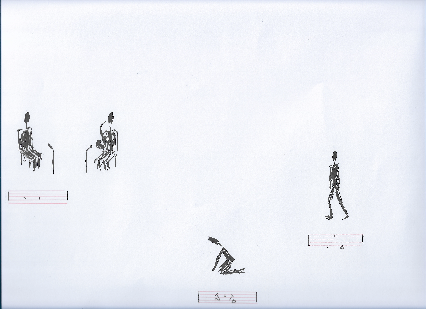 During the performance of Ng revisited (2018) the difference between performing similar material solely for a microphone (Ng (2013), Barren (2015) and performing it live for an audience, was striking. I do believe that listening to Ng (2013) reads as listening to a piece of music while listening to and seeing Ng revisited (2018) reads as a piece where the perspectives of music and choreography has collapsed. I write above that I hoped for the research project to make sense during the performance of Ng revisited (2018), and for me as a musician, it did. This is where the most knowledge gained lays, tacitly. This is also why the research questions I propose in the beginning of my research project perhaps are not completely on point. To me “a choreographic approach to Western art music” definitely offered a substantial donation, that premise also challenged the way I approached notation and helped me expanding the way I thought of musical structure, and changed the way I approached time and space in music. As with the aims of Ng (2013), expecting to be able to answer whether this research project offers a substantial donation to Western art music in general, might be disproportionate. However, for me the difference between playing my saxophone and performing a music-choreographic-poetic material is palpable. The absence of any object to be played has during the process of composing, rehearsing and performing been substantial; though any theoretical construction attempted to be built on it might end up rickety. Lifting my eyes and looking at the future of my research I am envisioning three pieces: