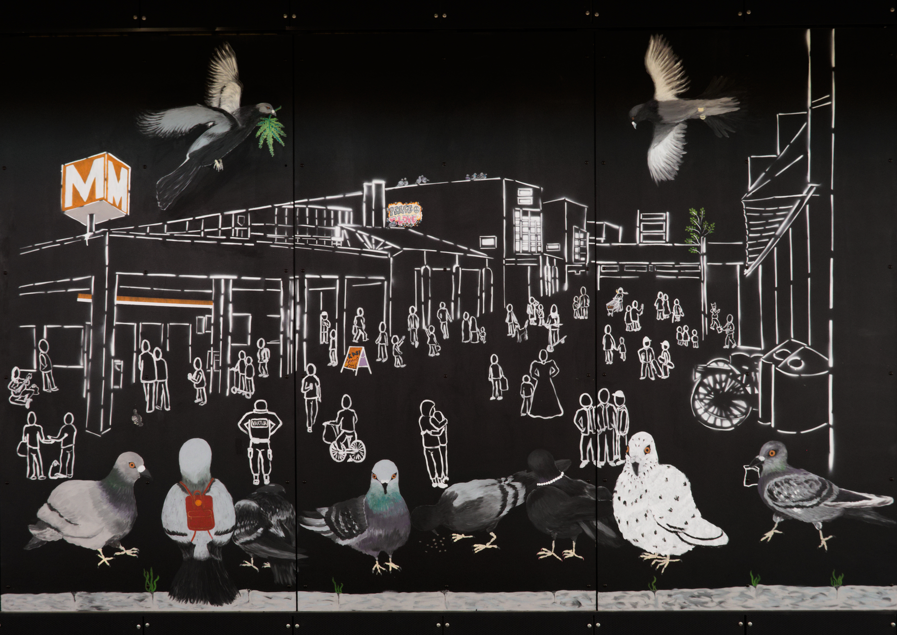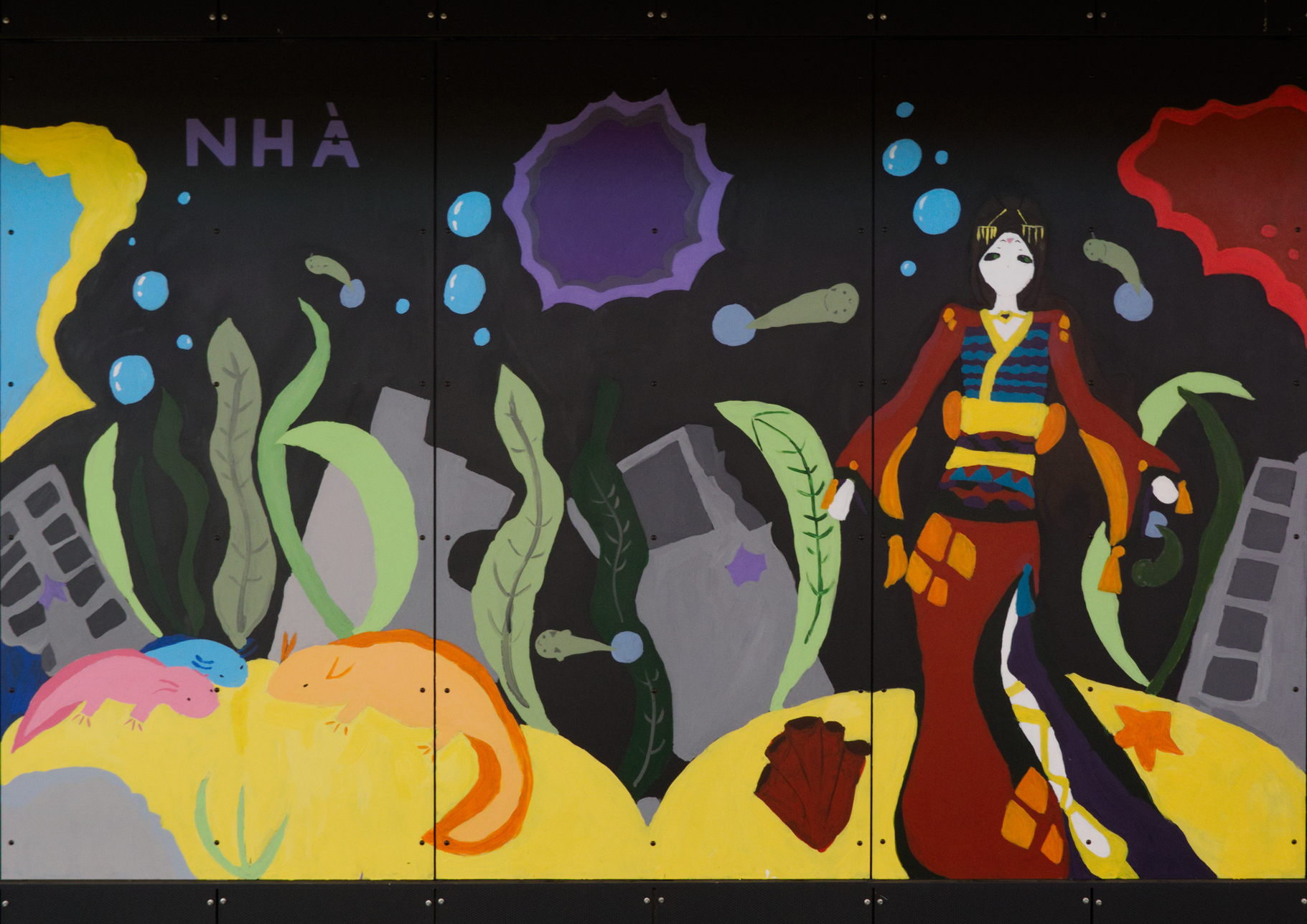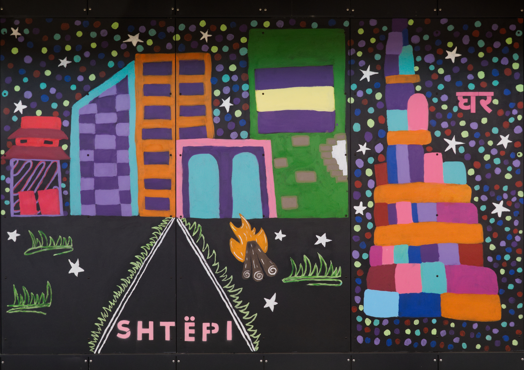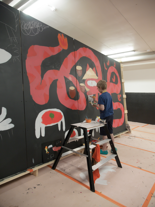 Heidi Hanninen, Academy of Fine Arts / Uniarts Helsinki, 5th year Doctoral student Artistic research: KAS! Kontula Art School – socially engaged public art Possibilities of the community art in culturally diverse contexts In this photo gallery you can take a look inside to KAS! Kontula Art School's socially engaged public art practice through the last artistic part of the artistic research by community artist-researcher Heidi Hänninen. "Kaupunki on meidän koti" ("City is our home") art work includes paintings from 36 KAS community members implemented for the renovated metro station in Kontula suburb. Both sides of the walls by the metro rails were covered by art: other side with the paintings by 18 adults from KAS collective and the other side by KAS Juniors (age 8-19 years). Juniors paintings include word HOME in 29 different languages locally spoken at homes and by friends and relatives of these kids and youngsters involved. Some of the languages are such that our juniors would like to know better or are already learning. In my artistic research initiated in 2021 I focuse on questions about ethically sensitive community art practice in the context of my ongoing project called KAS! Kontula Art School, socially engaged street art project, that I started in 2019 in suburban district Kontula in Eastern Helsinki. The aim of The Kontula Art School is to implement interesting public art but also to strengthen the community spirit and contribute to reduce potential conflicts in the region. Kontula is one of the most vivid, multilingual and culturally rich suburbs in Finland with the income level lower than the average. Kontula has been well known, especially among the media, for drugs used and sold around the shopping mall. The area is conflict sensitive and challenging but also a ground for experimenting new kinds of social / artistic realities and for the birth of communal practices far from the conventional borders and definitions. KAS! project has been cooperating with the local low threshold day center Symppis, where many of the customers have dual diagnosis (issues with both substance use and mental health). The participants of highly heterogeneous Kontula Art School consists of both adults and children. Participants represent various cultures, including substance use cultures. Some of the participants have educational background in arts but majority of them have been self taught. KAS! project has been involving artistically motivated people, regardless of their background, status or the life situation. Through the art making process I have had access to build ethically sensitive methodological toolkit for community art practices in culturally diverse contexts in a changing urban environment like Kontula, where understanding about good life varies greatly between its residents. Art creates possibilities for encountering and helps to break stigmas concerning certain groups of people. From the point of view of “Rebellious Research” (Ryynanen & Suoranta 2016) the world of art has crucial role in the process of fostering wellbeing of people and the justice in our shared society; art can reconstruct thinking and sometimes even the whole life of an individual. The key element in activist art is the act of participating, and questions like how people take part of the process and how does the act of process participates politically arise. (Suoranta & Ryynanen 2016, p. 235) In my study (street) art practice is the method of working and collecting research material (socially engaged art making practice and ready artworks in the public environment) but it is also an intervention for the (social) change. Through this research I suggest that socially engaged art interventions similar to KAS practice can empower both, the authors of the public art works and the whole surrounding community in a unique way, especially when used through the heterogeneous group context. KAS! practice is bringing up critical perspective concerning issues about public art and artistic experience of the urban environment by creating new directions to debate questions related to the community art, artistry, and the nature and possibilities of art itself in this changing world among those new realities that we share and shape together to be lived in. text: Heidi Hänninen (2025) photos: Tanguy Gérôme (2025)