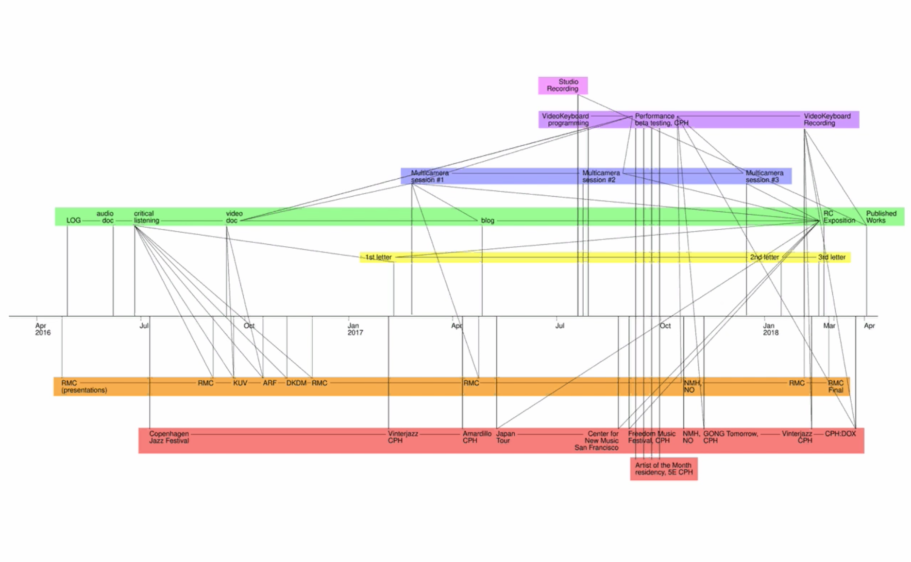 - Public final presentation at RMC, February 28, 2018, including concert and audio-visual oral presentation. Peer response from two opponents (Jacob Anderskov and Christian Blom) as well as questions from the audience.