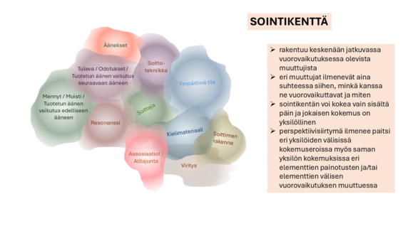 Sointikentän rakentumisessa kaikki vaikuttaa kaikkeen; pienilläkin muutoksilla on usein merkittävä vaikutus ja siksi yksi soittajan tärkeimpiä ominaisuuksia on oppia kuuntelemaan ja kuulemaan. Jokaisen on löydettävä oma kokemuksensa kuuntelemisen kautta. Sointikentän musiikki on erilaisten näkökulmien kudelma; toinen kuulee ja näkee erilaisia yksityiskohtia tai kokee erilaiset asiat merkityksellisiksi kuin toinen, ja molemmat ovat yhtä oikeassa.