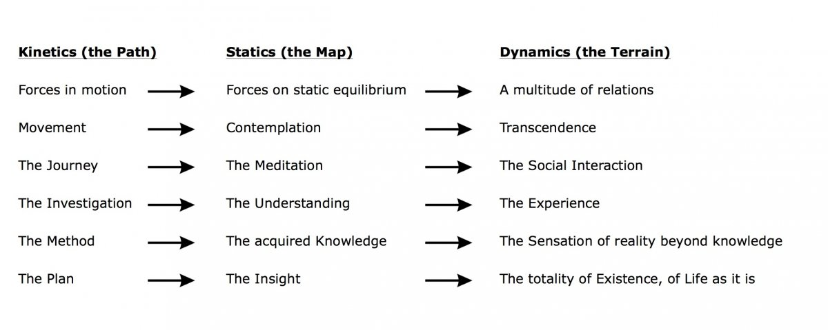 “Dynamics” is thought of as the synthesis of “Kinetics” – Statics dialectic. It concerns the encounter with the “other” or the “others”, with the unpredictable, the unknown, and in the end, with the world.