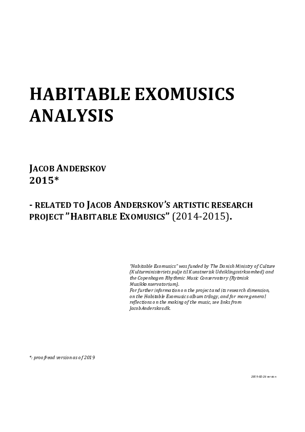 The Habitable Exomusics Analysis is a theoretical text with thorough musical analysis and disseminations of selected dimensions of the artistic output in the project.