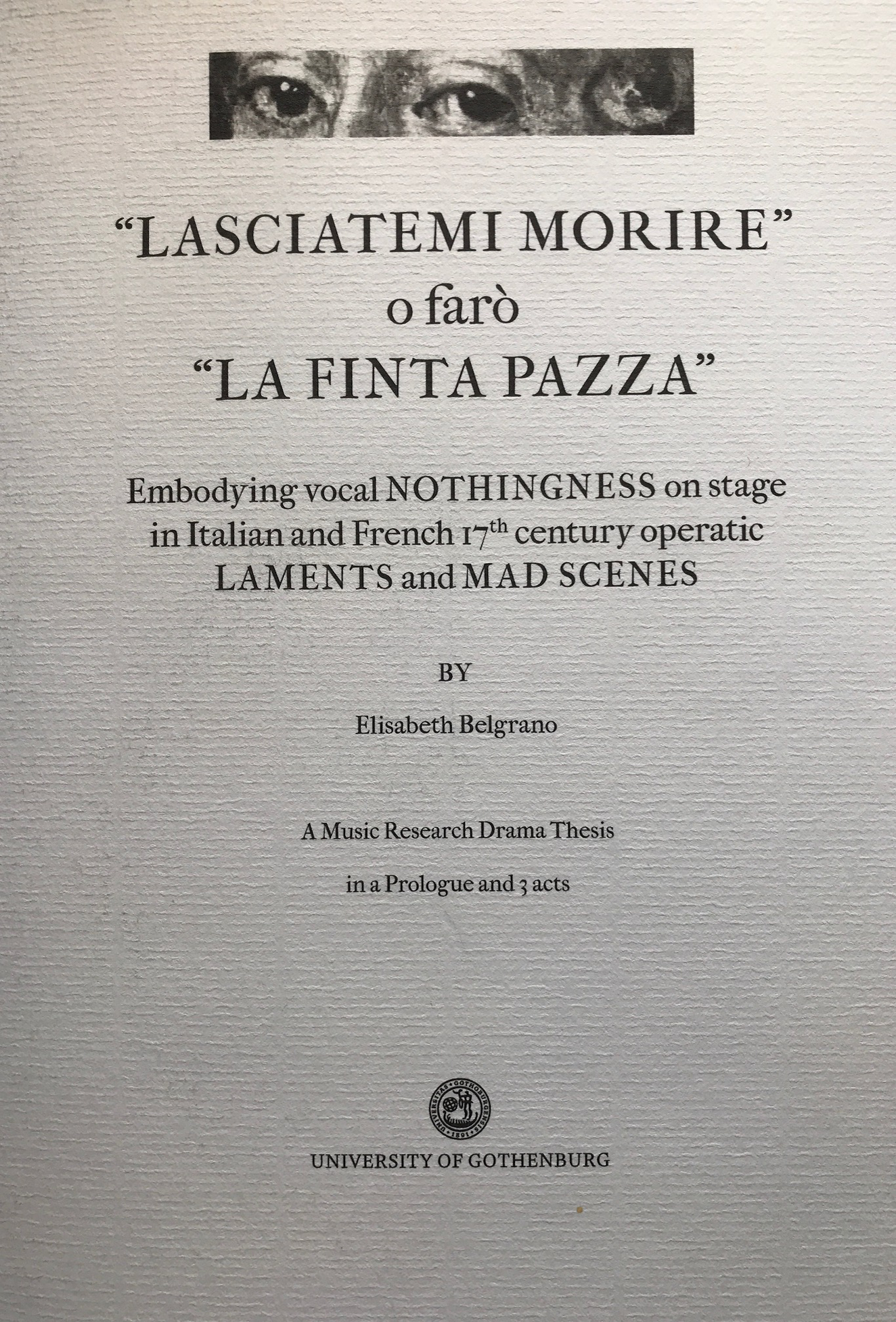 The thesis is presented in three parts: a Libretto, a performance of the libretto (DVD) and a Cannocchiale (that is, a text following the contents of the Libretto). In the libretto the Singer’s immediate inner images, based on close reading of the musical score have been formulated and performed in words, but also recorded and documented in sound and visual format, as presented in the performance on the DVD. In the Cannocchiale, the inner images of the Singer’s encounter with the score have been observed, explored, questioned, highlighted and viewed in and from different perspectives.