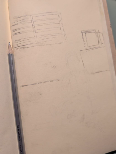 Then I erased the person out it and photographed the sketch. I didn’t post it