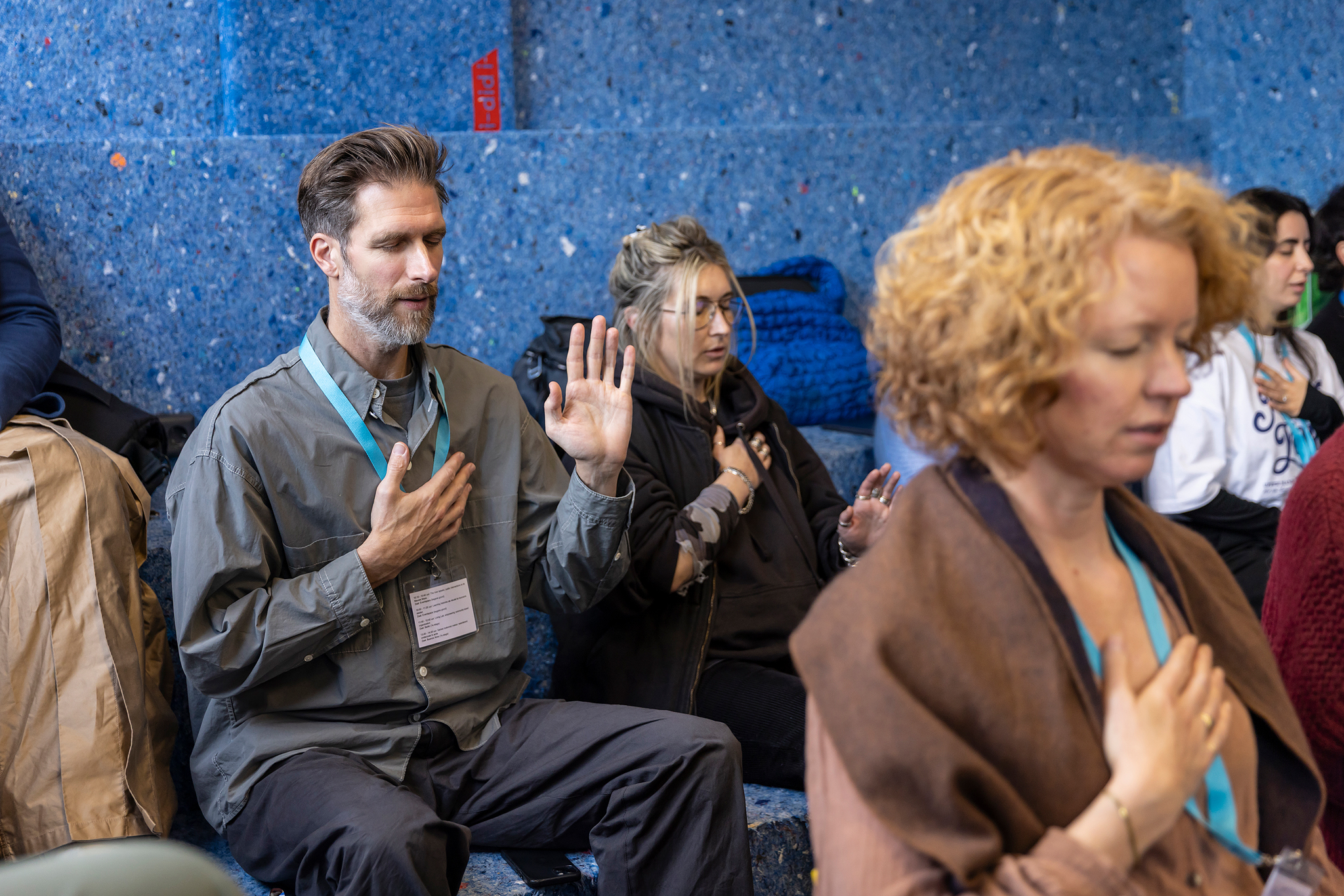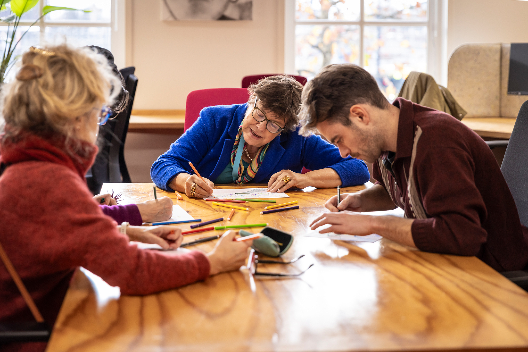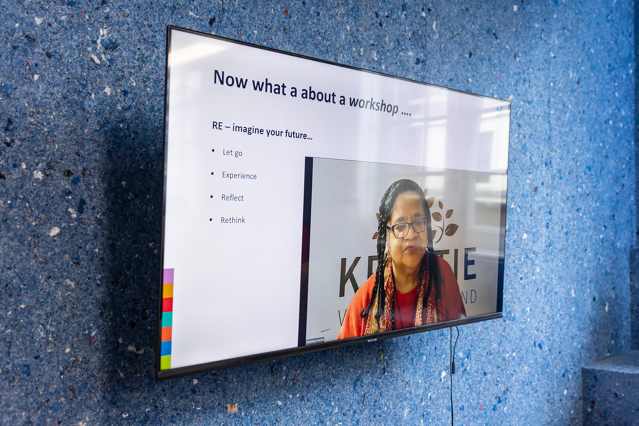 The workshop included a pre-recorded contribution by Peggy Anijs, who led a guided meditation, inviting participants to reflect, pause, and connect through breath. This embodied moment was followed by discussion, in which participants expressed interest in how the Kraktie community functions beyond the centre’s activities, extending into mutual support in everyday life.