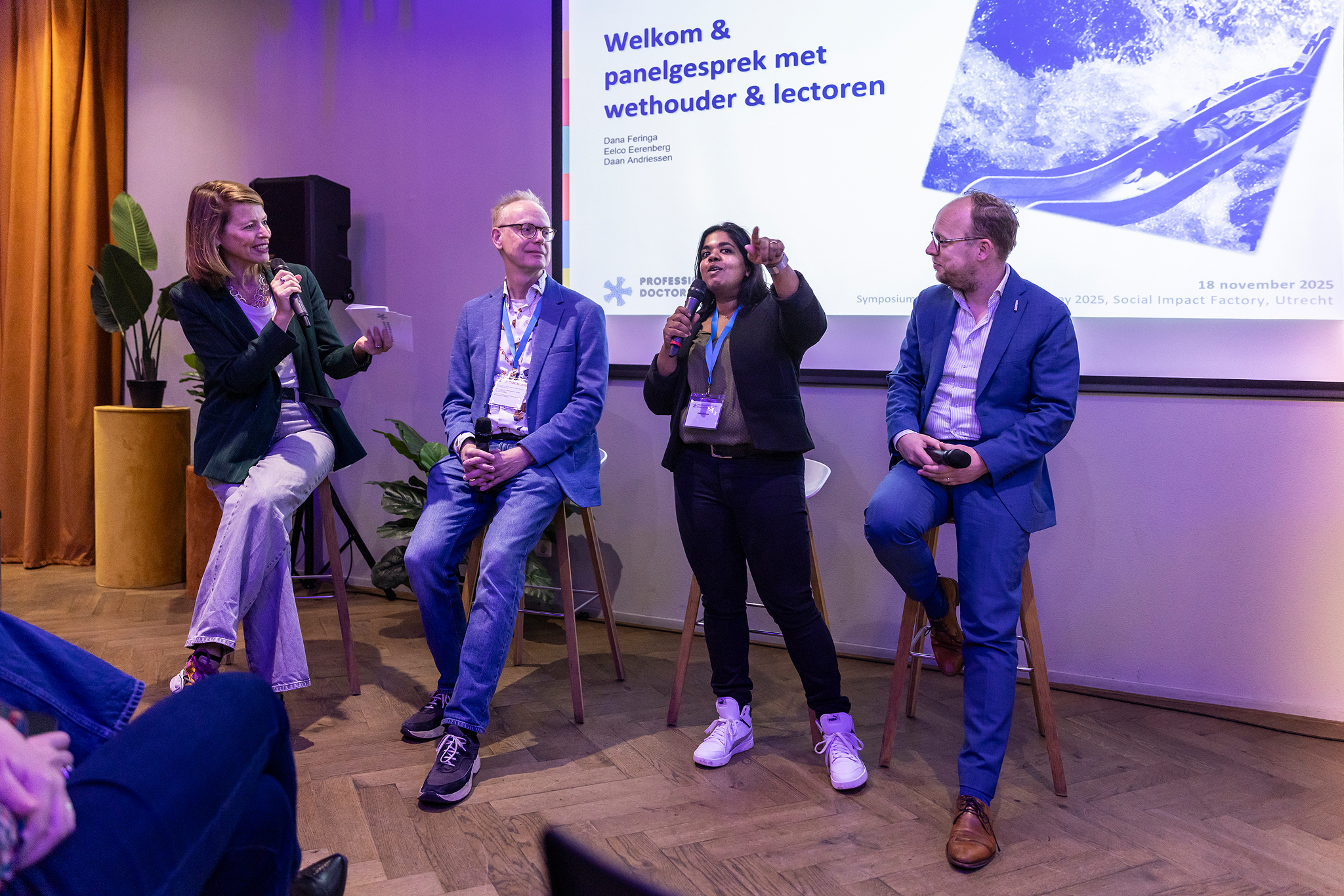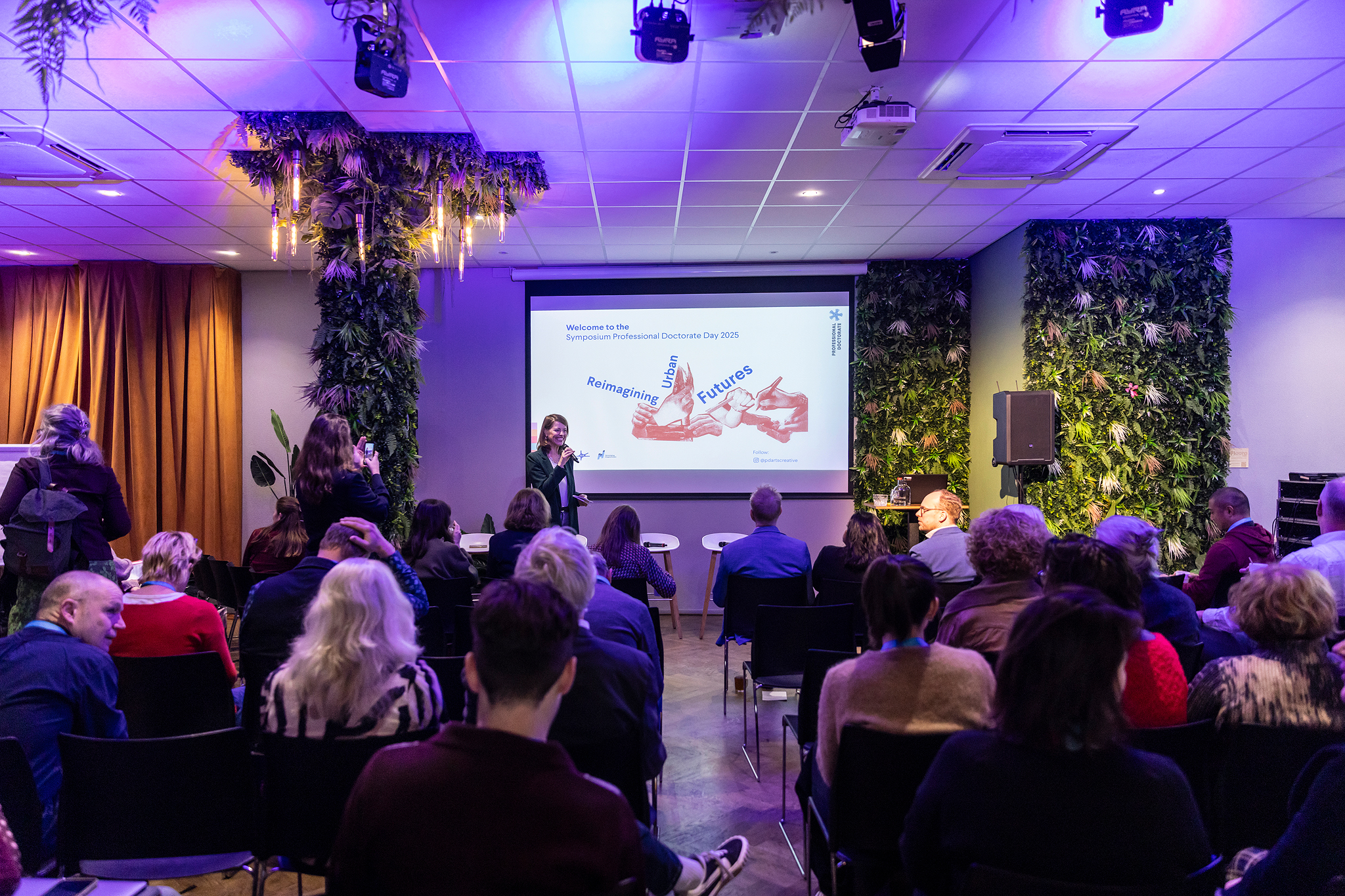 The first PD Day Symposium brought together all Professional Doctorate domains at the Social Impact Factory in Utrecht for a transdisciplinary day of keynotes, workshops, and panel discussions. Under the title “Reimagining Urban Futures”, the programme was organised around five subthemes: Equal Opportunities and Social Justice, Participation and Ownership, Sustainable and Inclusive Cities, Strengthening Communities and Urban Resilience, and Digital and Technological Accessibility.