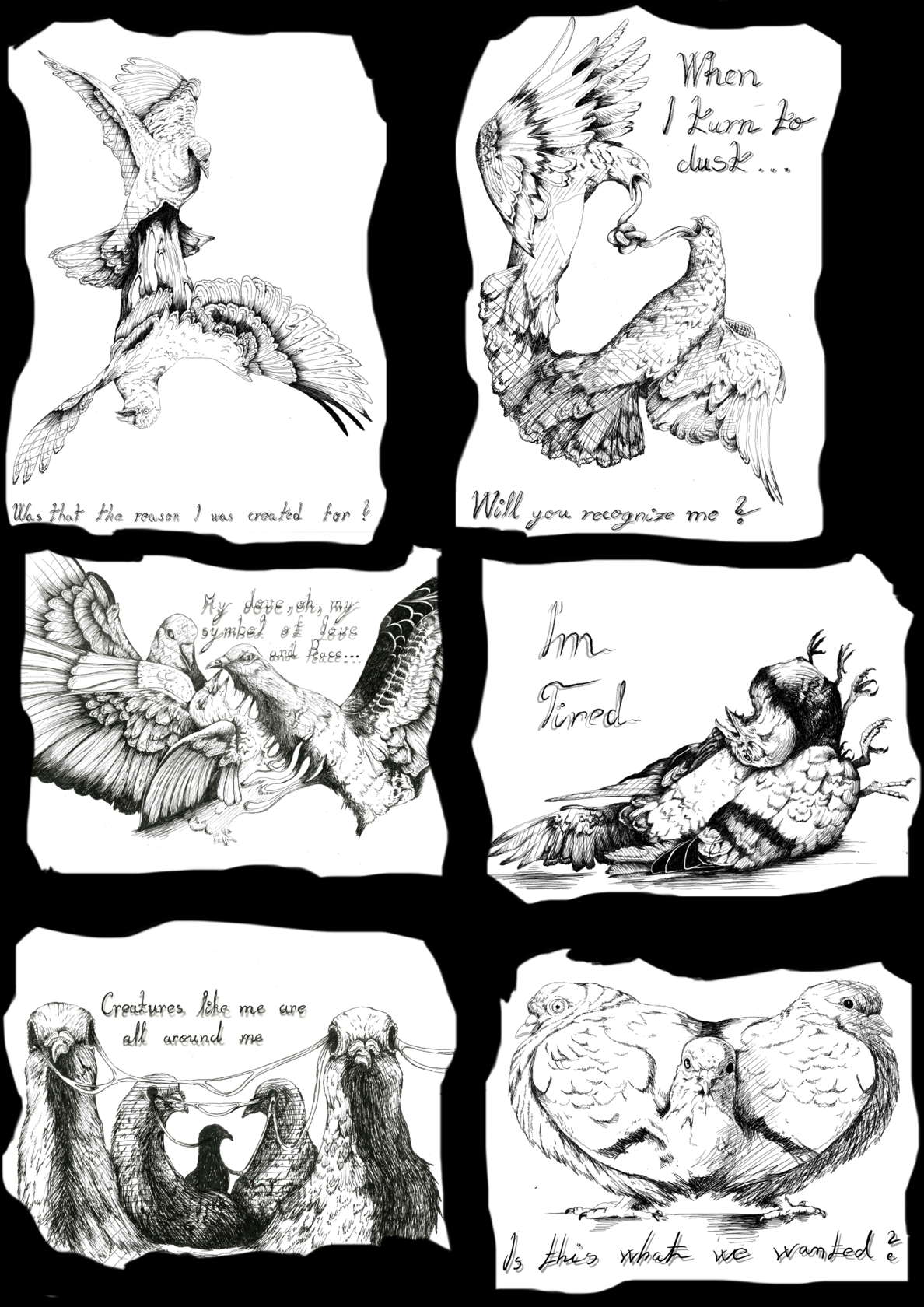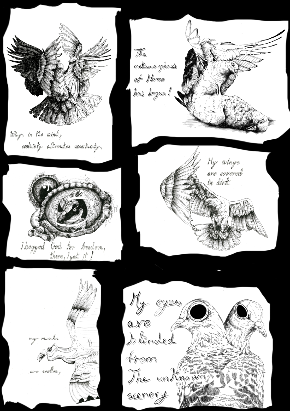 I plan to experiment further with illustration, photography and maybe other visual mediums in urban areas. Conceptually, I want to deepen the project’s reflection on how domesticated animals like pigeons, once symbols of peace and communication, are forced to survive in urban places. Their condition becomes a metaphor for human psychological states of exile and searching.