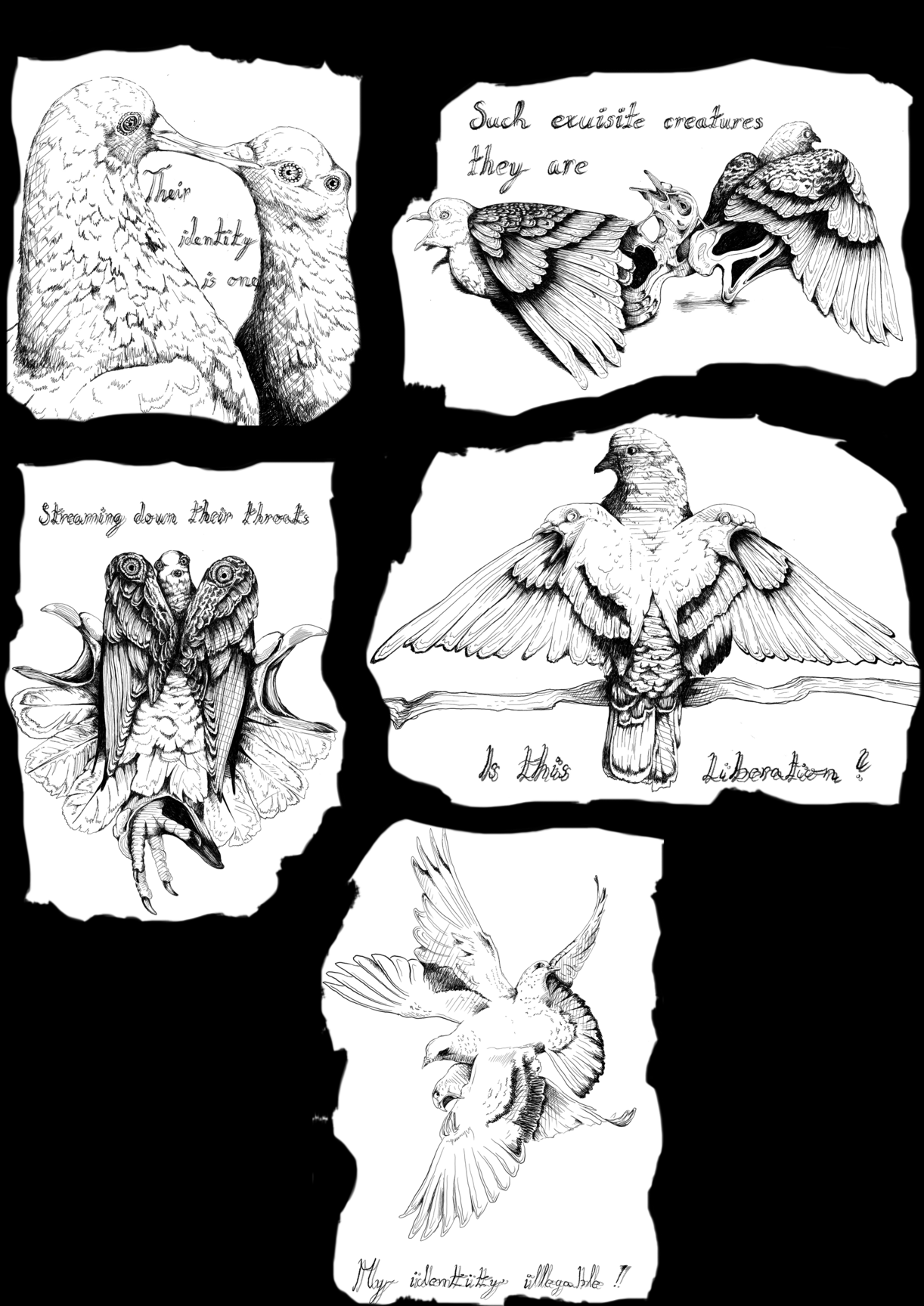 My project explores the relationship between illustration, poetry, and urban space. Through a project titled “Metamorphosis of Home”, I use the pigeon as a symbol to question of belonging, identity, and freedom, both with human, animals and nature. I began the project with a poem written during a period of personal struggles and has evolved into a series of posters (drawings) placed around the Trøndelag region.