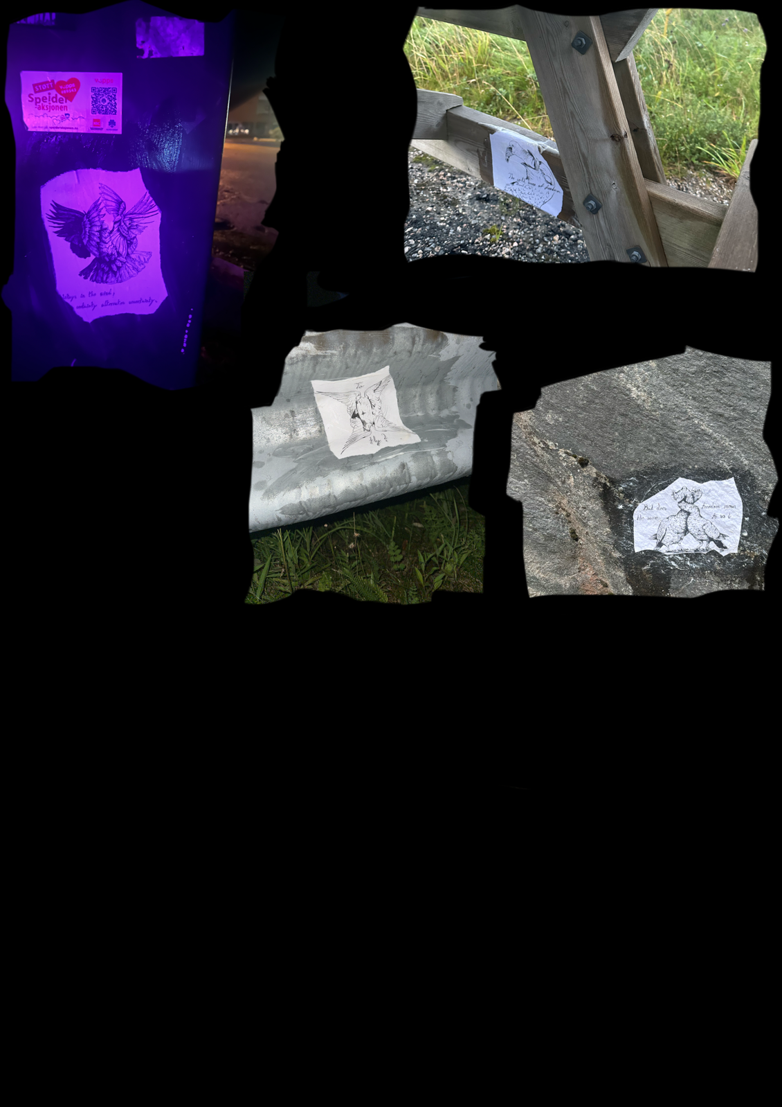 Each verse has been transformed into a illustration, later wheat-pasted in public places such as trees, trash can, walls and more across Trøndelag. The process spreads quietly through the region like the flight of pigeons themselves with almost invasive narrative. In my practice I try to observe the world from the perspective of what is often unseen or undervalued, like animals, discarded spaces, or neglected emotions.