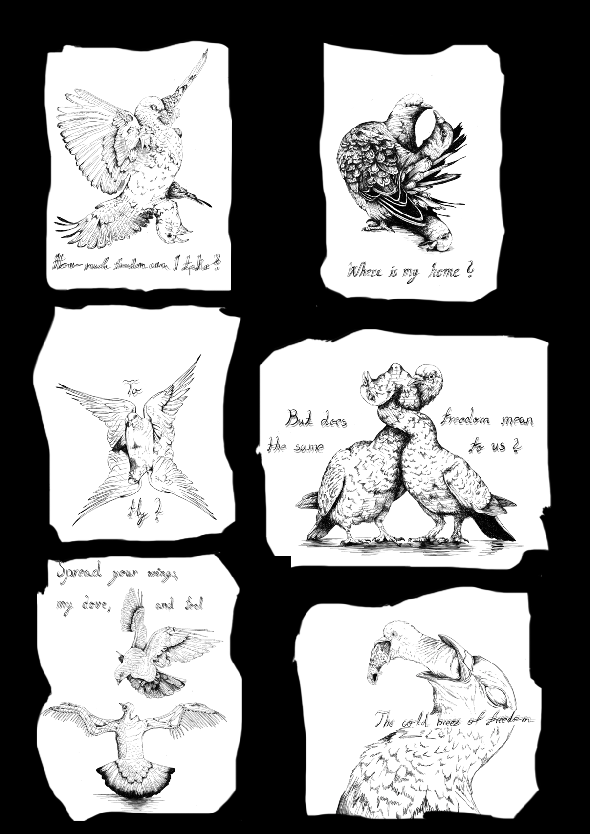I focus on creating connections between the personal and the public, the emotional and the political. I work across illustration and street art. Often using drawing as a language for vulnerability and resistance. The pigeon, a creature that was once rejected, has become a symbol for my project, reflecting the human struggle of belonging and questioning what “freedom” means.