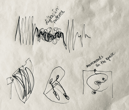 For this section, I have rewritten my notes from the six sessions, incorporating the sketches I made to capture bodily experinces, spatial and material compositions that emerged. These reflections are from my perspective, and I can not know wheter my reflections resonate with the concepts, ideas and perspective of my colleagues.