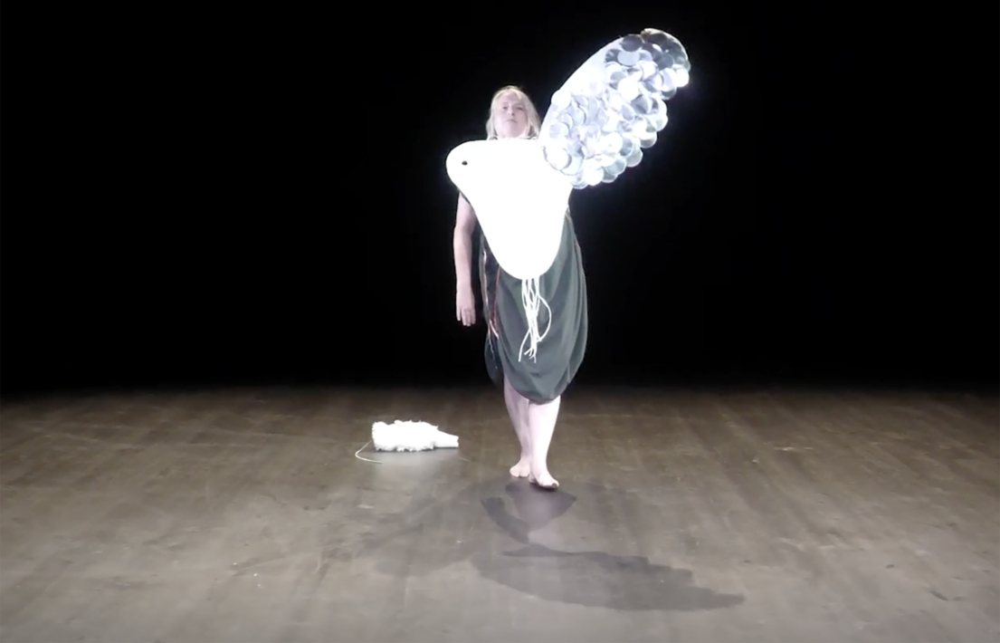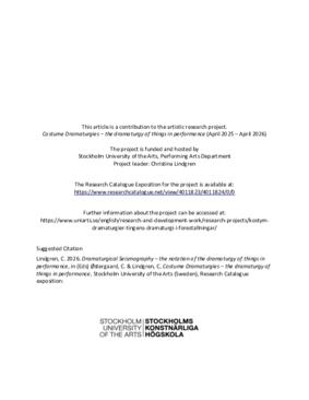 The artistic research Costume Agency (2018 – 2023) included the creation of twenty performances emerging from costume (Lindgren and Lotker (eds) 2023). The creation process for most of these costume-generated performances was as follows: improvising with the costumes, exploring their potential, selecting actions, deciding on the order of the actions, and refining and developing each action into scenes. This way, the dramaturgy emerged through the interaction between humans and non-humans.