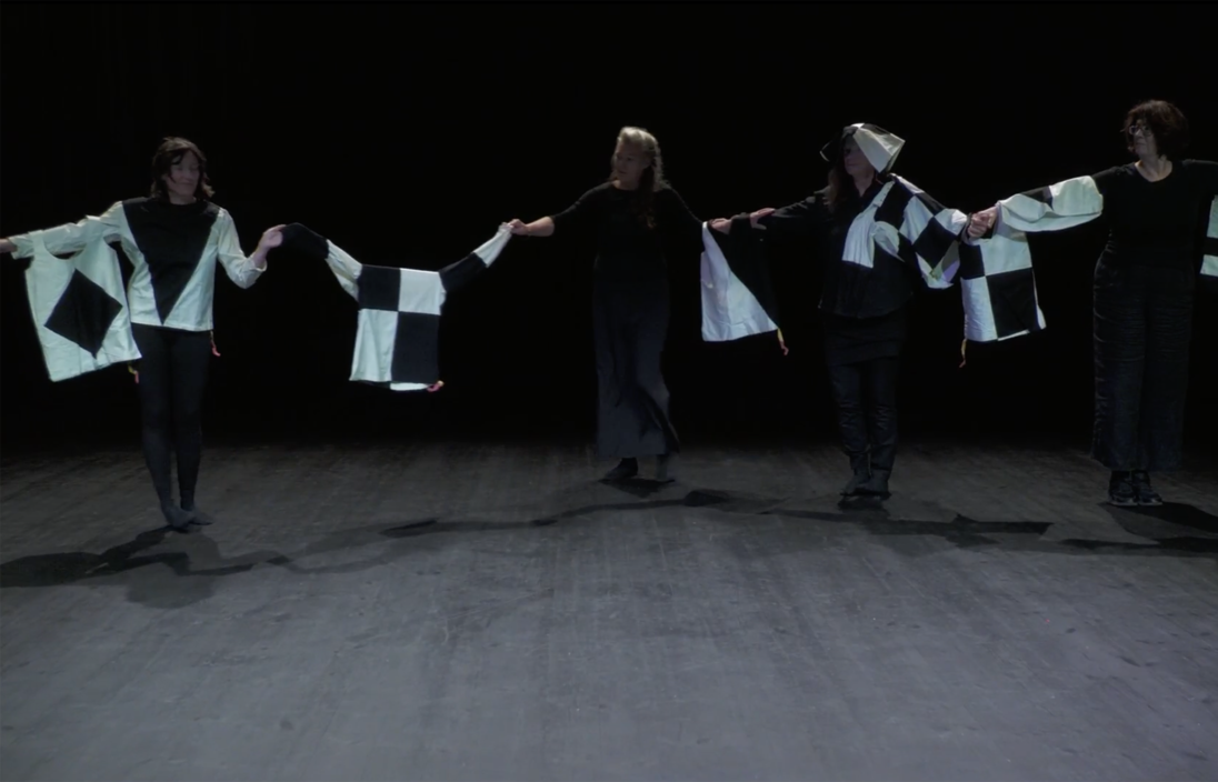 The artistic research Costume Agency (2018 – 2023) included the creation of twenty performances emerging from costume (Lindgren and Lotker (eds) 2023). The creation process for most of these costume-generated performances was as follows: improvising with the costumes, exploring their potential, selecting actions, deciding on the order of the actions, and refining and developing each action into scenes. This way, the dramaturgy emerged through the interaction between humans and non-humans.
