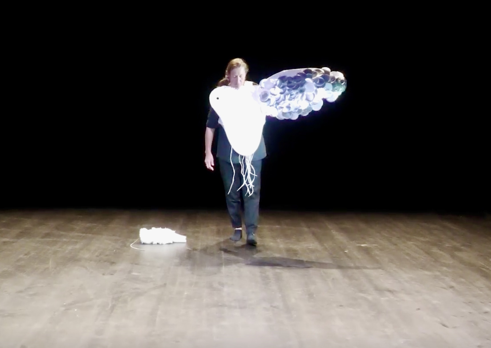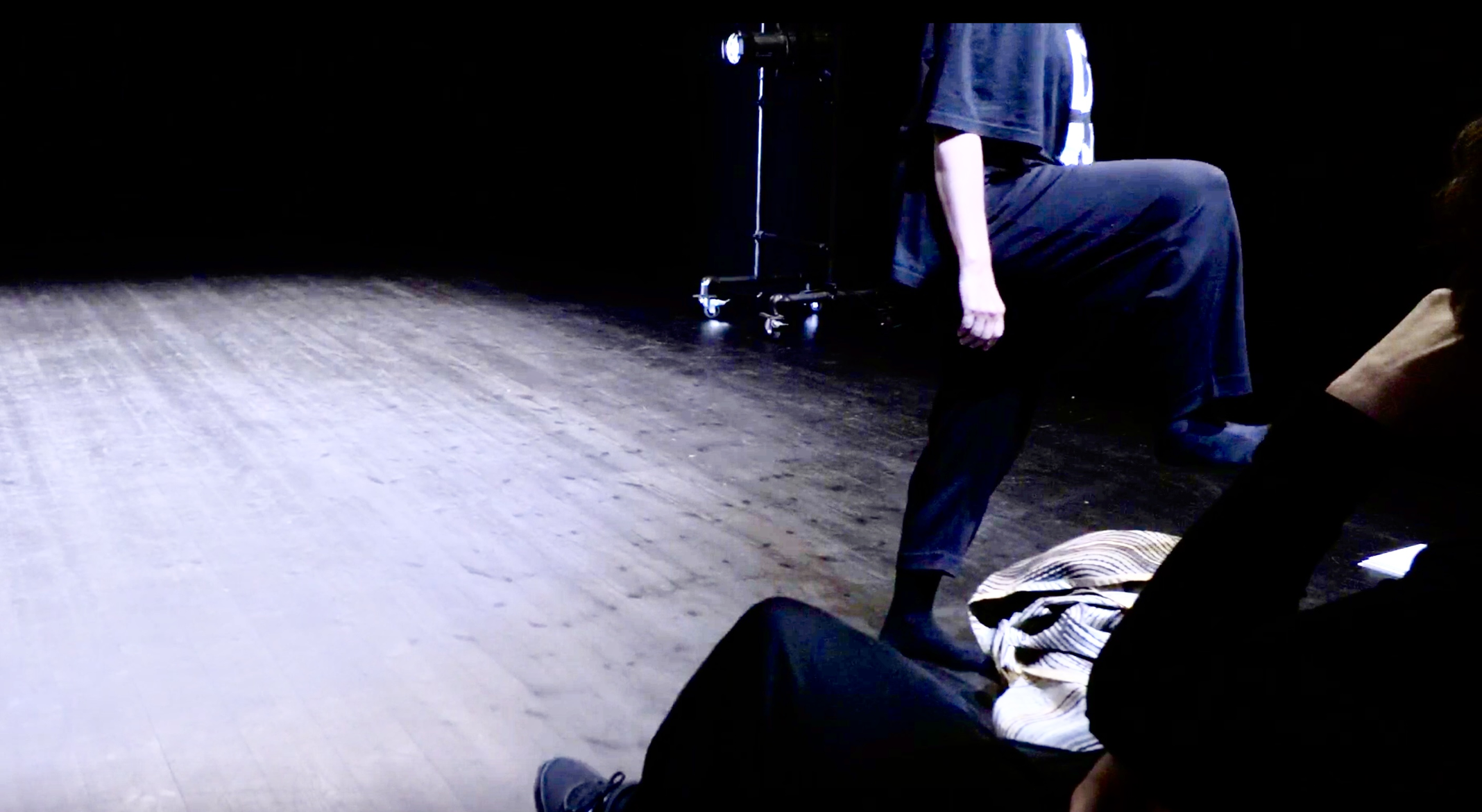 Each part includes a poetic text written in Norwegian and translated English which reflects on what Holmberg explored in the session. Each text are presented alongside an image (screen short) from the video documentation from the specific session.