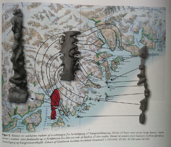 "Non-human mapping agents — from Lidar sensors to drones to plotting robots — can be critical agents in the cartographic enterprise. Yet the non-human Other is also an agent in those landscapes we seek to map. As we’ve already seen, fish and waves dominate Pacific Islanders’ seascape epistemologies; ice and hunting paths shape Inuit maps; and flora and fauna are central to the landscape imaginaries of environmentalists and extraction companies alike. In most Western frameworks, non-human Others, from animals to plants to minerals, are represented as resources to be exploited: things to eat or mine or look at in a national park. But now the convergence of certain new ways of thinking — Anthropocene studies, new relational ontologies, Latourian actor-networks, feminist ethics, and what Donna Haraway describes as “SF” thinking, science fiction, speculative fabulation, string figures, speculative feminism, science fact, so far — has inspired many contemporary mapmakers to think about how to represent these Others not merely as human resources, but as entities with equal claim to the landscapes they inhabit, and with their own spatial intelligences."