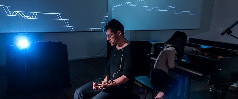 Autonomic Resonance - Jonathan Reus and Momoko Noguchi. Free improvisation with hand-made biometric recording devices, visual projections, and musical artificial intelligence.