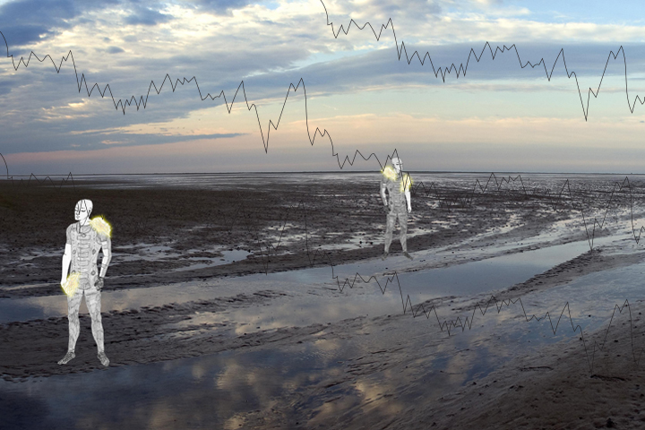 Performers transmit their biometric data of experiencing the changing tides of the Wadden sea via internet uplink to "organs" in the exhibition space in Pistori Palace, Bratislava.