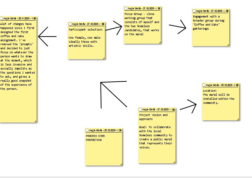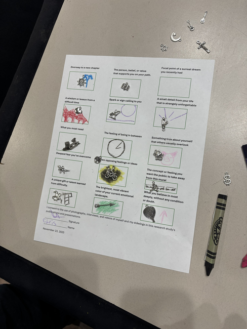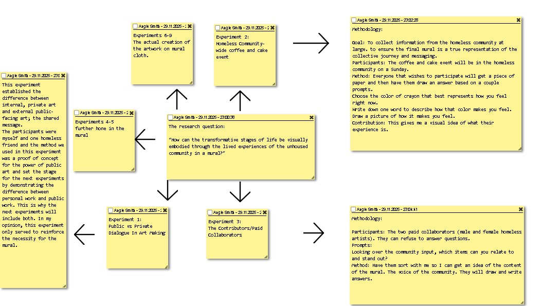 “How can the transformative stages of life be visually embodied through the lived experiences of the unhoused community in a mural?”