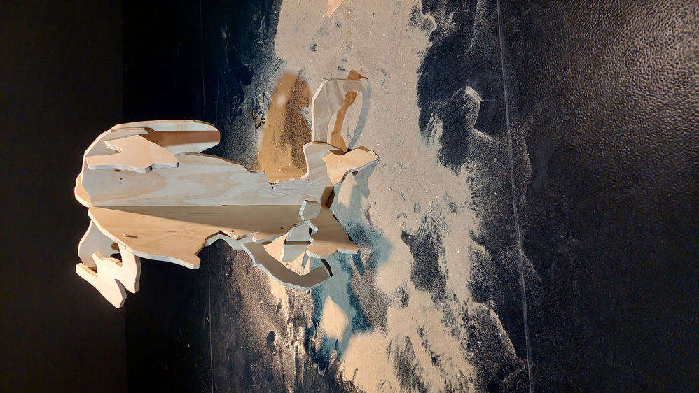 The very first interpretation of the grain of sand in wood. This interpretation should symbolize the way the grain of sand becomes and slowly fragments - never finished - always in flux.