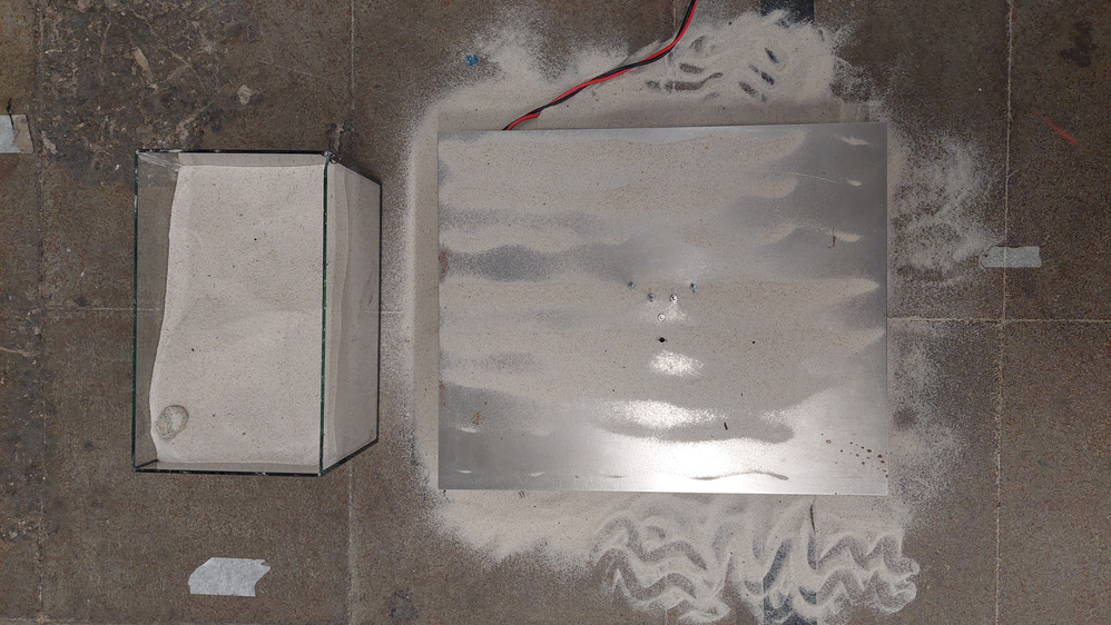 Experimenting with transuser, frequencies, metal plate and sand.