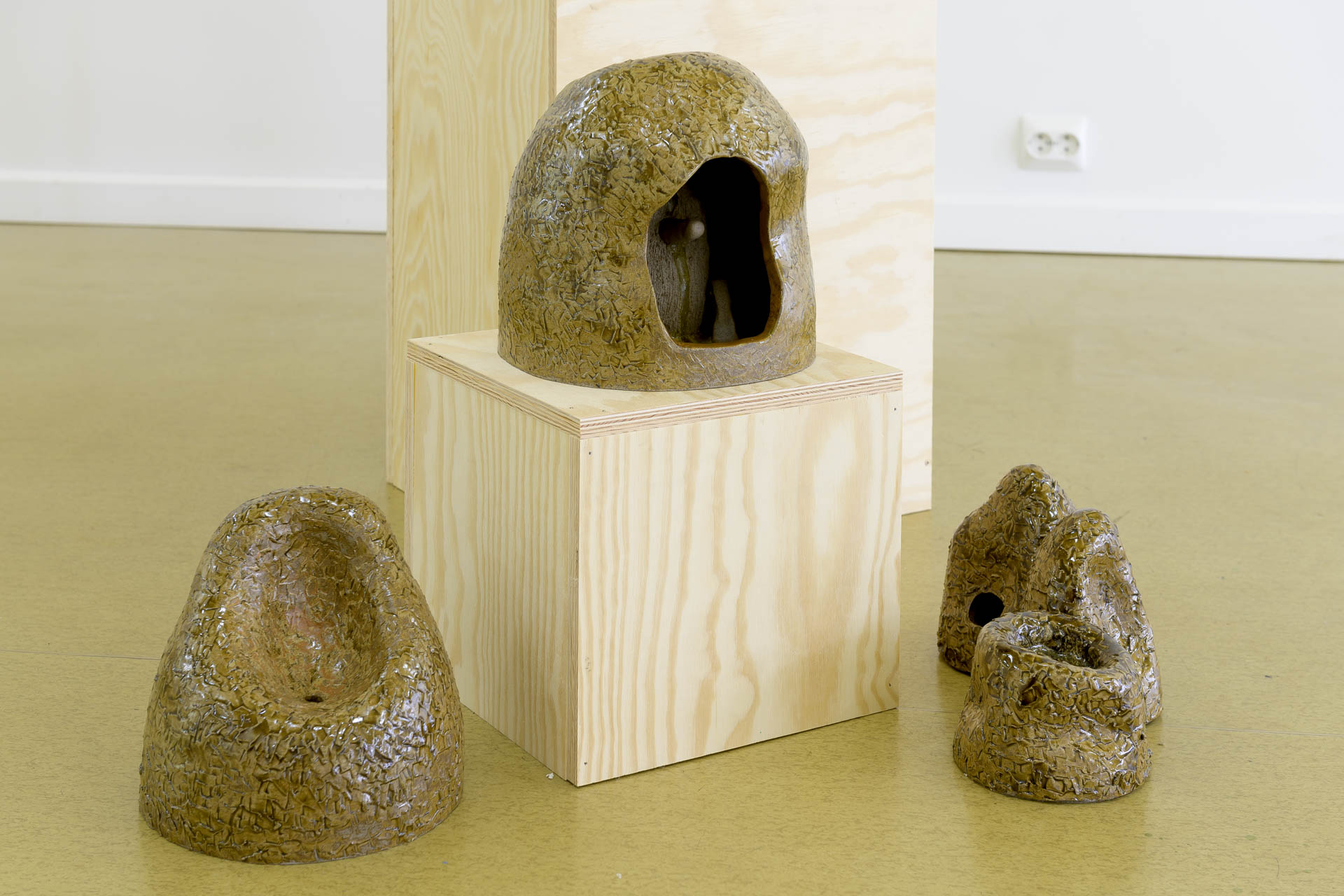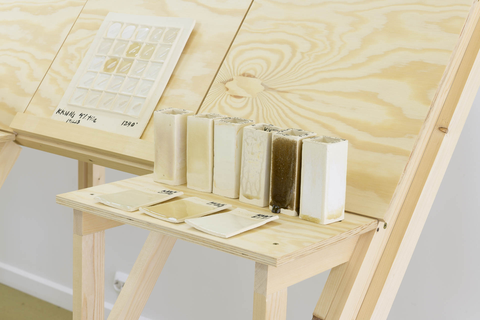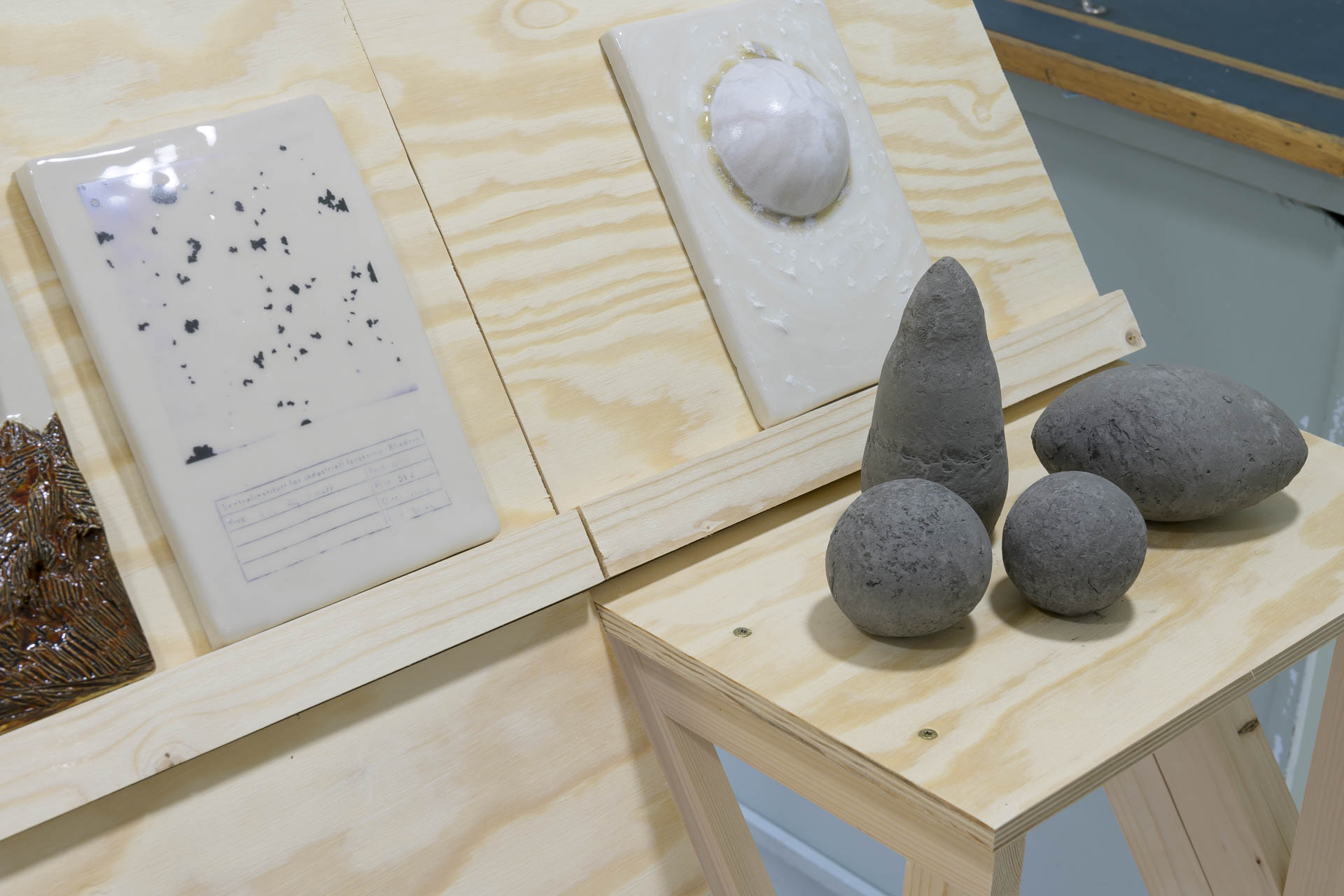 Over the past two years, the artist group has visited Titania's mines and deposits, gathering materials from the local history. Just as geologists examined the areas in Sokndal over 150 years ago in search of valuable minerals, the group has wandered through the landscape, picking stones and collecting sand, clay, and rust-colored earth. These findings have been brought back to the ceramic laboratory at KhiO, where they have been processed through ceramic methods.