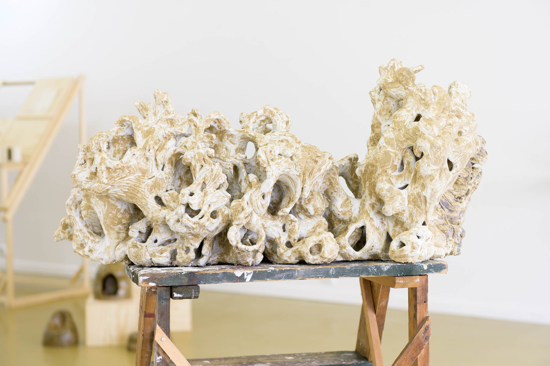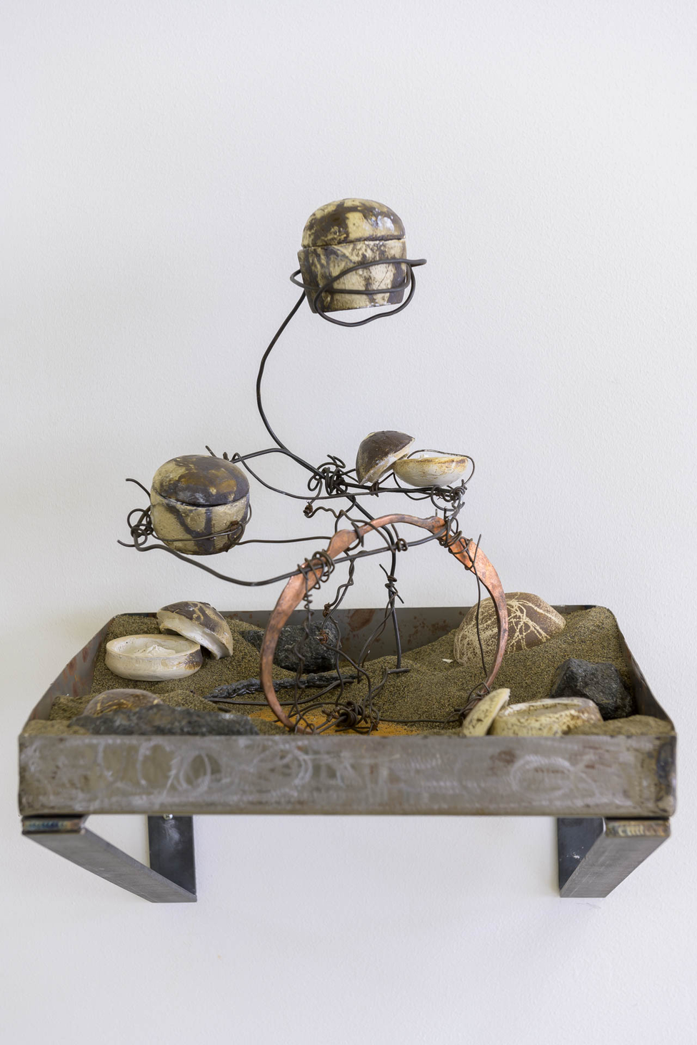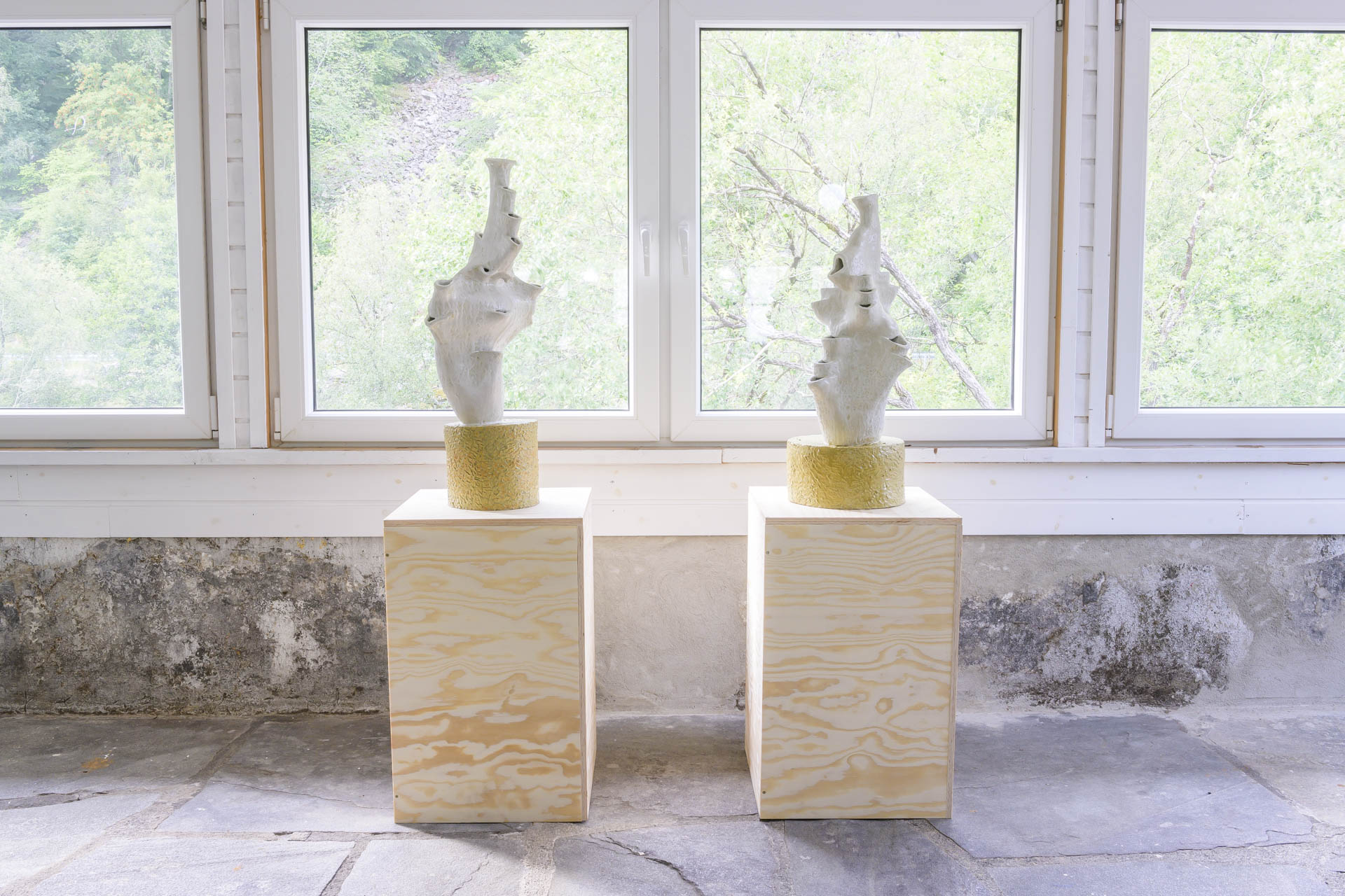 Over the past two years, the artist group has visited Titania's mines and deposits, gathering materials from the local history. Just as geologists examined the areas in Sokndal over 150 years ago in search of valuable minerals, the group has wandered through the landscape, picking stones and collecting sand, clay, and rust-colored earth. These findings have been brought back to the ceramic laboratory at KhiO, where they have been processed through ceramic methods.