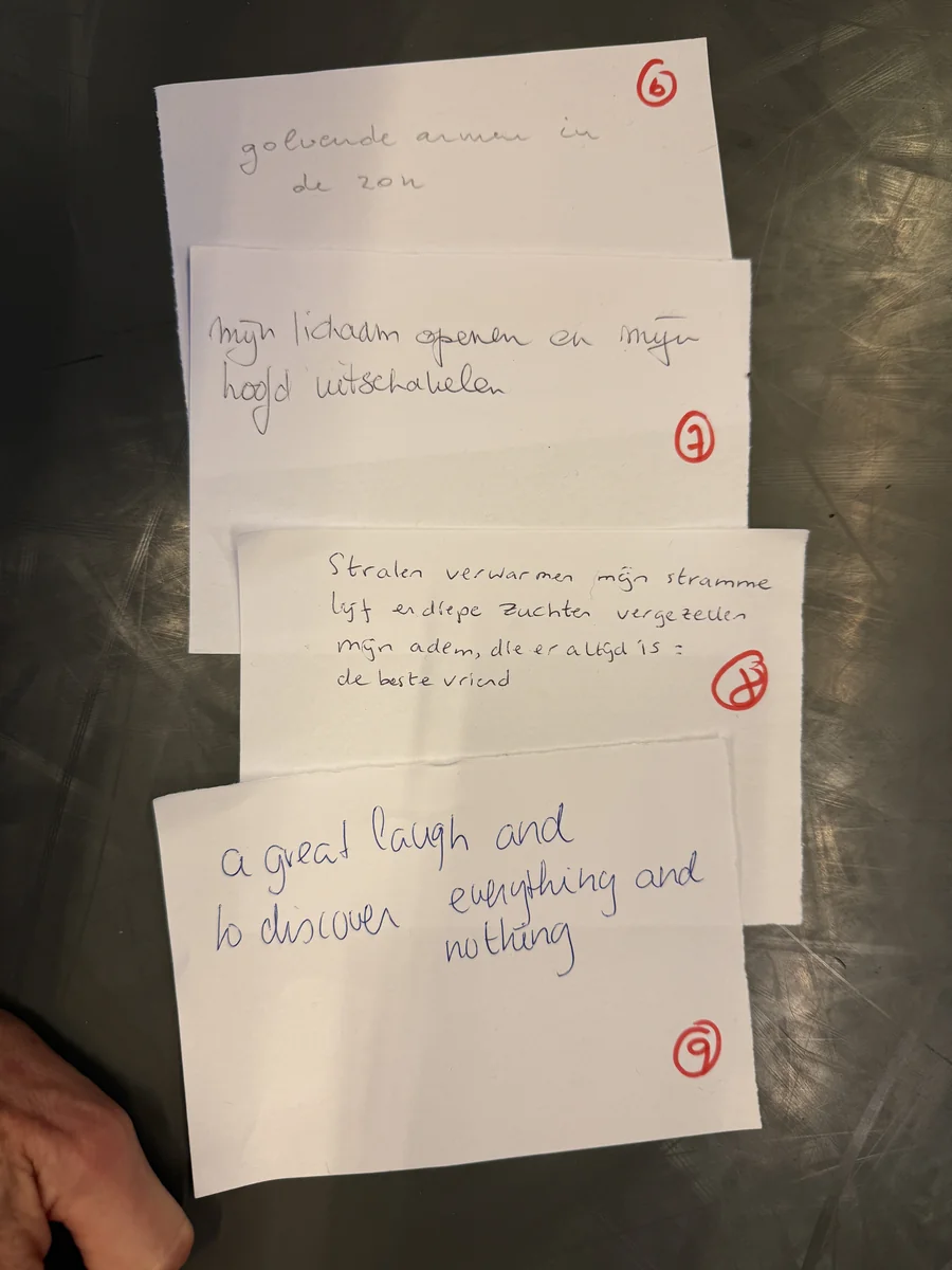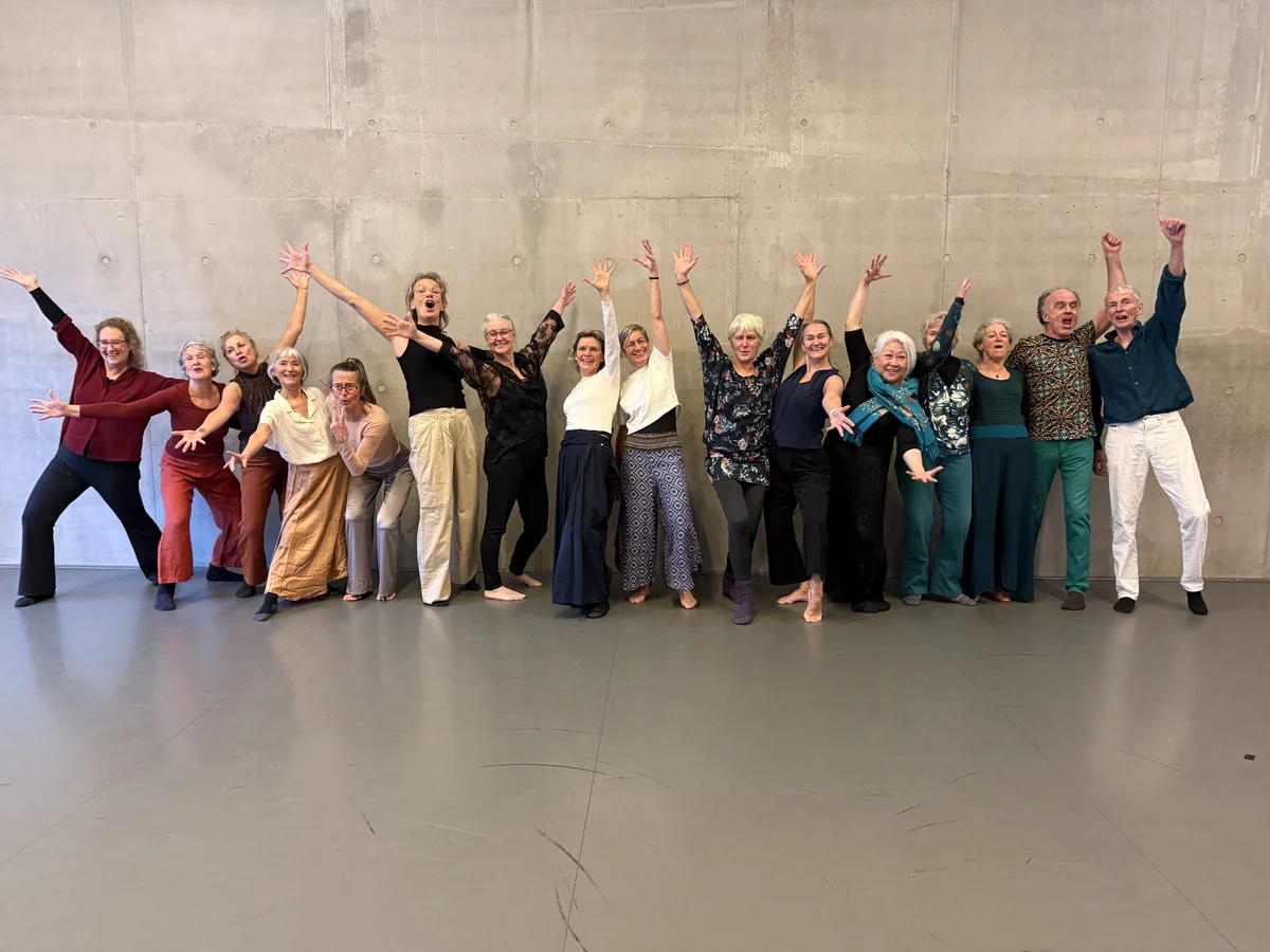 Gesteund door de groep het is mooi om alle details van je beweging te voelen, op te merken en je erover te verwonderen.
