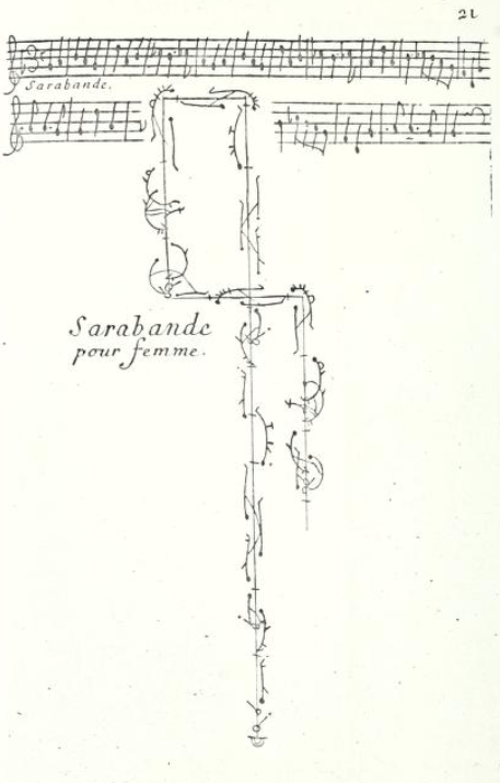 Many of the stylized dances we know today have originated in music that was actually danced to on theatrical stages and at court balls, yet in contemporary concert culture, this music is most often encountered as sound alone, eliminating the connection to bodily action and spatial awareness. This research project wishes to investigate how historical dance notation from the late 17th and early 18th century, specifically the Beauchamp–Feuillet innovating system, can come to life and create an embodied experience for its audience through contemporary video art combined with live music performance. Informed by cognitive perspectives on entrainment that describe how listeners naturally align attention, timing, and movement with musical flow, the project invites audiences to experience Baroque dance music as a shared, physical, and time-based event. [1]