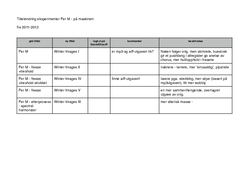 The attached pdf from 2013 shows how the different "Per M" processings are renamed as Winter Images movements.1 As described, the first movement has more of the original bowing sounds, while the second movement is more sinewave-like. There are only slight differences in duration between the movements, showing the not much has been done to the original timing of Sciarrinos piece.