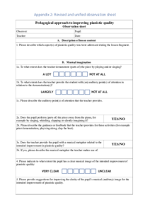This research focuses on the guidance of students of piano methodology ("piano pedagogy") in acquiring didactic skills. More specifically, it aims to support them in understanding and applying research-based educational principles in their internship lessons. Recent scientific research on motor control and motor skill learning offers opportunities for evaluating current practices in piano pedagogy and coming up with innovative teaching approaches. Based on an extensive review of research results, I have formulated educational principles for achieving pianistic quality. I argue that mental auditory representations of intended musical outcomes ("musical intentions") iniate and steer musical motor control processes. Furthermore, I have summarized several research-supported teaching strategies that promote motor skill learning and presented examples of their practical application in piano pedagogy. I have applied several interventions aimed at enhancing conveyance of these educational principles to students of piano methodology. In the first place, I have created extensive study materials (booklets, videos, slide presentations) that both explain and show practical applications of these principles in piano pedagogy. Furthermore, I have introduced peer-to-peer learning: students observe and evaluate their own and each other's internship lessons. Results of this research show that further improvement of the methodology course is required in order to achieve its goals. Both the study material and the peer-learning opportunities have shown to be valuable additions. However, students still exhibit a lack of creativity in finding relevant teaching strategies within their internship lessons. I have formulated several additional interventions for further improvement.