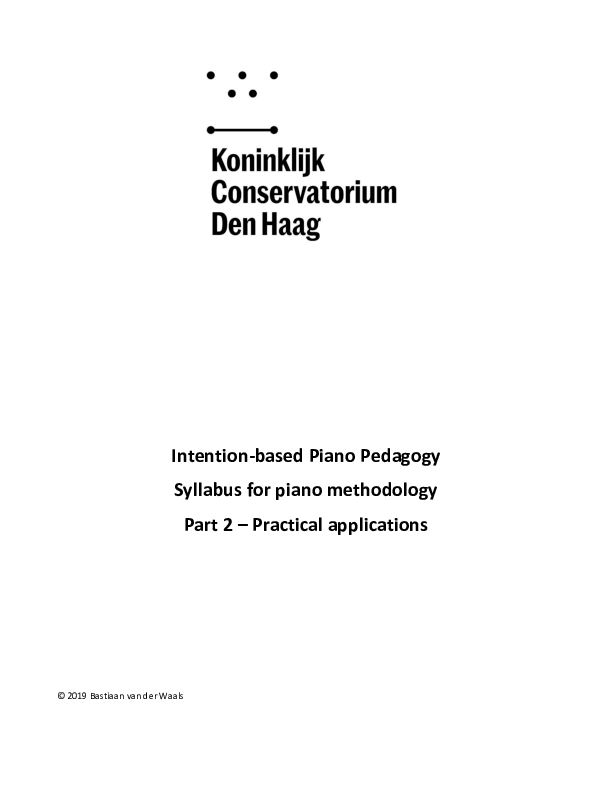 This research focuses on the guidance of students of piano methodology ("piano pedagogy") in acquiring didactic skills. More specifically, it aims to support them in understanding and applying research-based educational principles in their internship lessons. Recent scientific research on motor control and motor skill learning offers opportunities for evaluating current practices in piano pedagogy and coming up with innovative teaching approaches. Based on an extensive review of research results, I have formulated educational principles for achieving pianistic quality. I argue that mental auditory representations of intended musical outcomes ("musical intentions") iniate and steer musical motor control processes. Furthermore, I have summarized several research-supported teaching strategies that promote motor skill learning and presented examples of their practical application in piano pedagogy. I have applied several interventions aimed at enhancing conveyance of these educational principles to students of piano methodology. In the first place, I have created extensive study materials (booklets, videos, slide presentations) that both explain and show practical applications of these principles in piano pedagogy. Furthermore, I have introduced peer-to-peer learning: students observe and evaluate their own and each other's internship lessons. Results of this research show that further improvement of the methodology course is required in order to achieve its goals. Both the study material and the peer-learning opportunities have shown to be valuable additions. However, students still exhibit a lack of creativity in finding relevant teaching strategies within their internship lessons. I have formulated several additional interventions for further improvement.