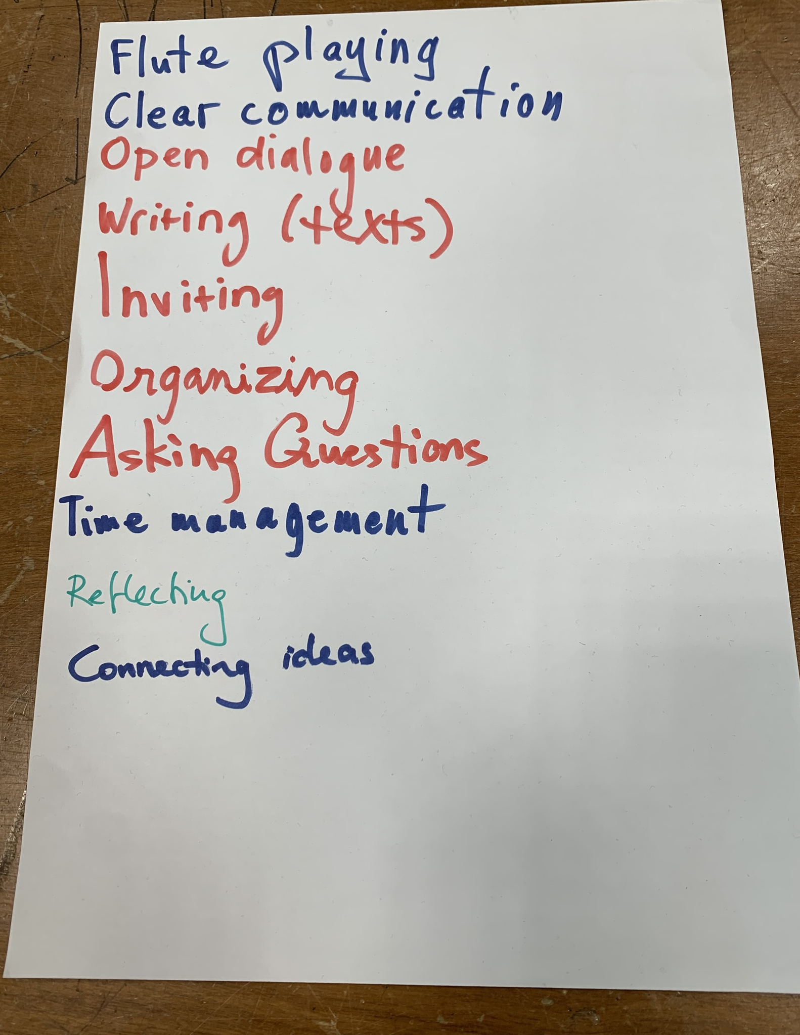 As noted, Liz Lerman’s Critical Response Process is a tool that can support a more horizontal feedback process and encourage response-ability in students. We spent time practicing this on each other, using the works with which we had presented ourselves as material. This process not only encourages active involvement by the artist concerned, the development of skills in creating neutral questions, but also nourishes an understanding of how we can safely communicate with each other. Learning through doing.