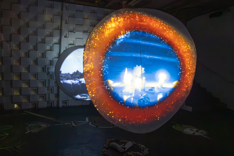 The exposition gathers documentation of Whyte&Zettergren’s live actions and ritual practices at locations in Iceland where the Apollo 11 astronauts trained for their journey to the Moon. It also includes infrared imagery, a technology used in space visualization to capture light waves invisible to the human eye, recorded during the duo’s space journeys. The duo explores space both as a site where future colonial projects are planned and as a fictional realm for imagining alternative worlds.