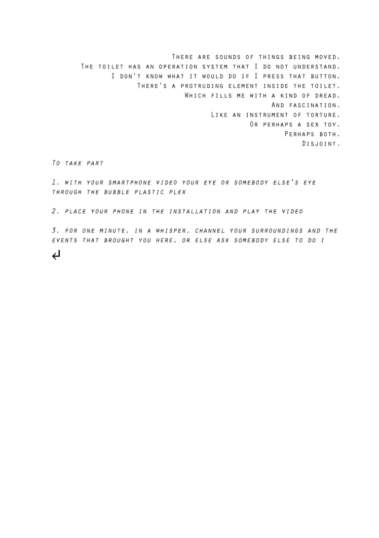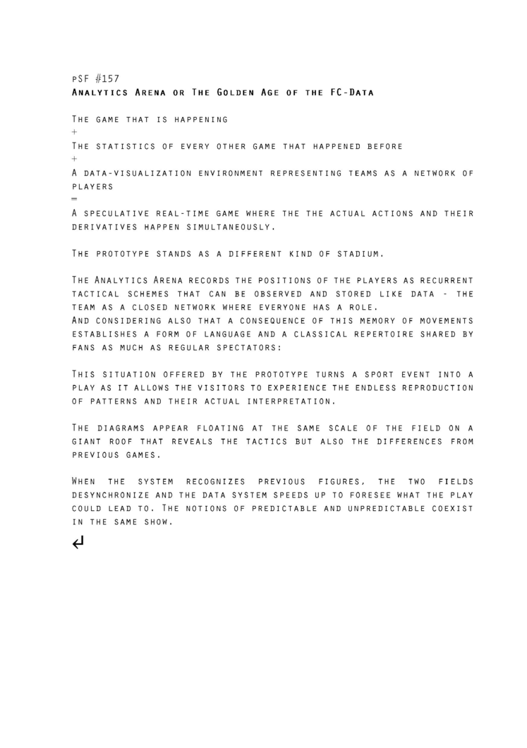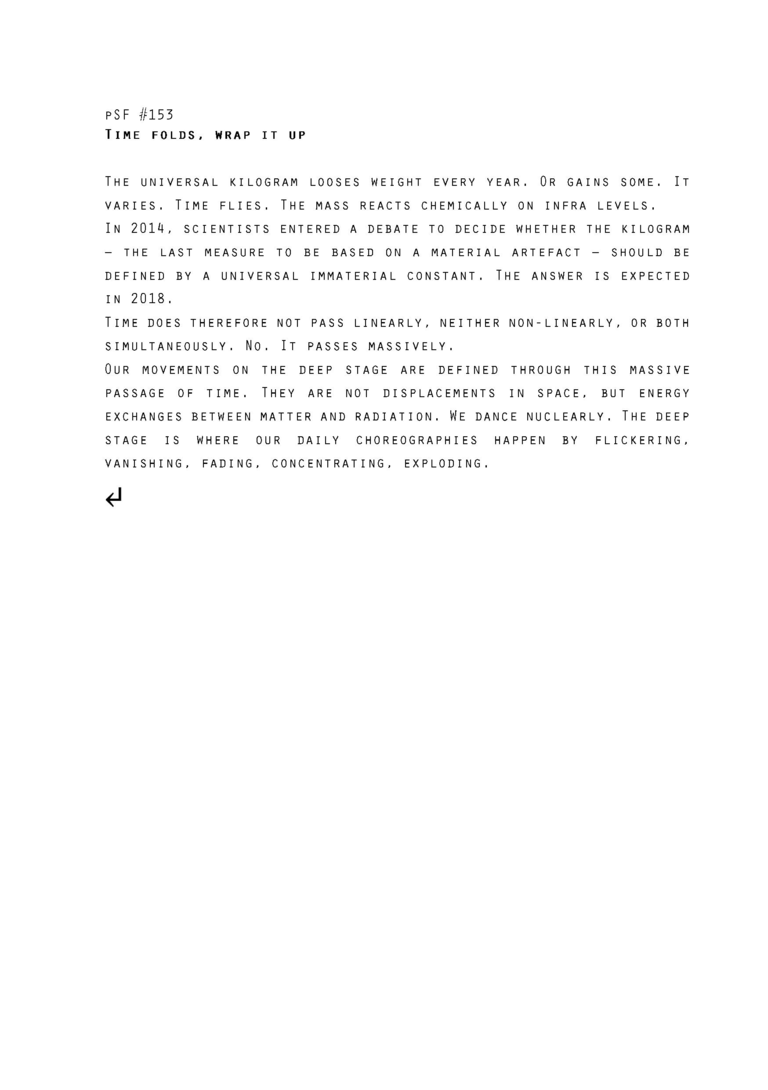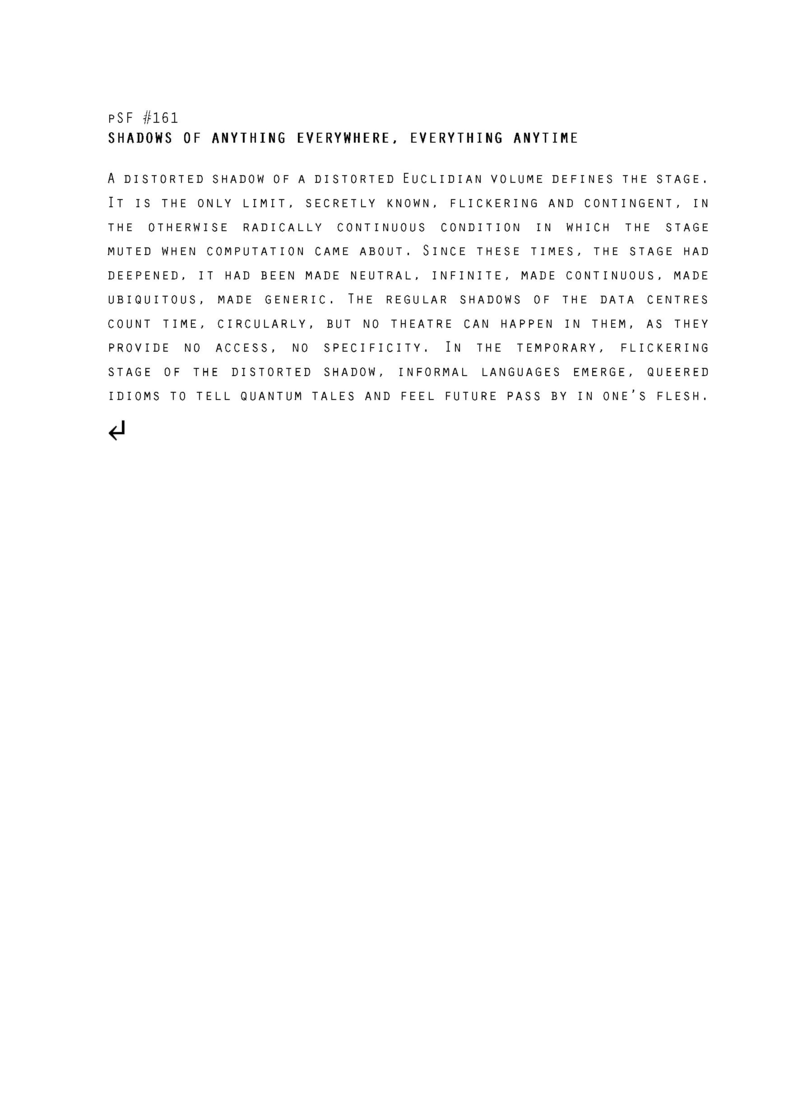 2016 – 2018 by weS.A.N.K.* Research Group: Vincent Roumagnac and Emmanuelle Chiappone-Piriou in collaboration with guests artists and architects The weS.A.N.K. research project emerged from director-researcher Vincent Roumagnac’s dialogue with architect- researcher Emmanuelle Chiappone-Piriou. It surfaced at the confluence of Roumagnac's doctoral research on “Deepening the Stage” and Chiappone-Piriou's research on proto-architecture in relation to art and computation. Together they have designed and implemented a two-year experimental project with and around the question: "How to prototype the stage of the future?". Via five collaborative sessions, in Tokyo, Paris, Helsinki, Barcelona and Daegu, together with artists and architects invited locally, they carried out the performative design and assembling of those prototypes. From general themes – including theatre and architecture, stage and time ecology, big data and post-industrial landscapes, dystopian narratives and daily rituals, networks, climate, memory, energy and affect... – the spontaneous conceptualization and manufacture of prototypes sought to explore contemporary bio/techno-sensitive and geographical conditions and, from those diverse perspectives, to coalesce physical and informational objects with a scenic dimension. weS.A.N.K. Deep Stage As... is the final staging of the whole research project. Through a double mise-en-scène - an installation and an exposition on the Research Catalogue - it invites spectators to enter this twofold speculative landscape and to take part, through the experience of the shared quantity, in the emergence of alternative common scenic imaginaries. *weS.A.N.K. is for we Speculative Architectures of Neganthroposcenic Kronotopias